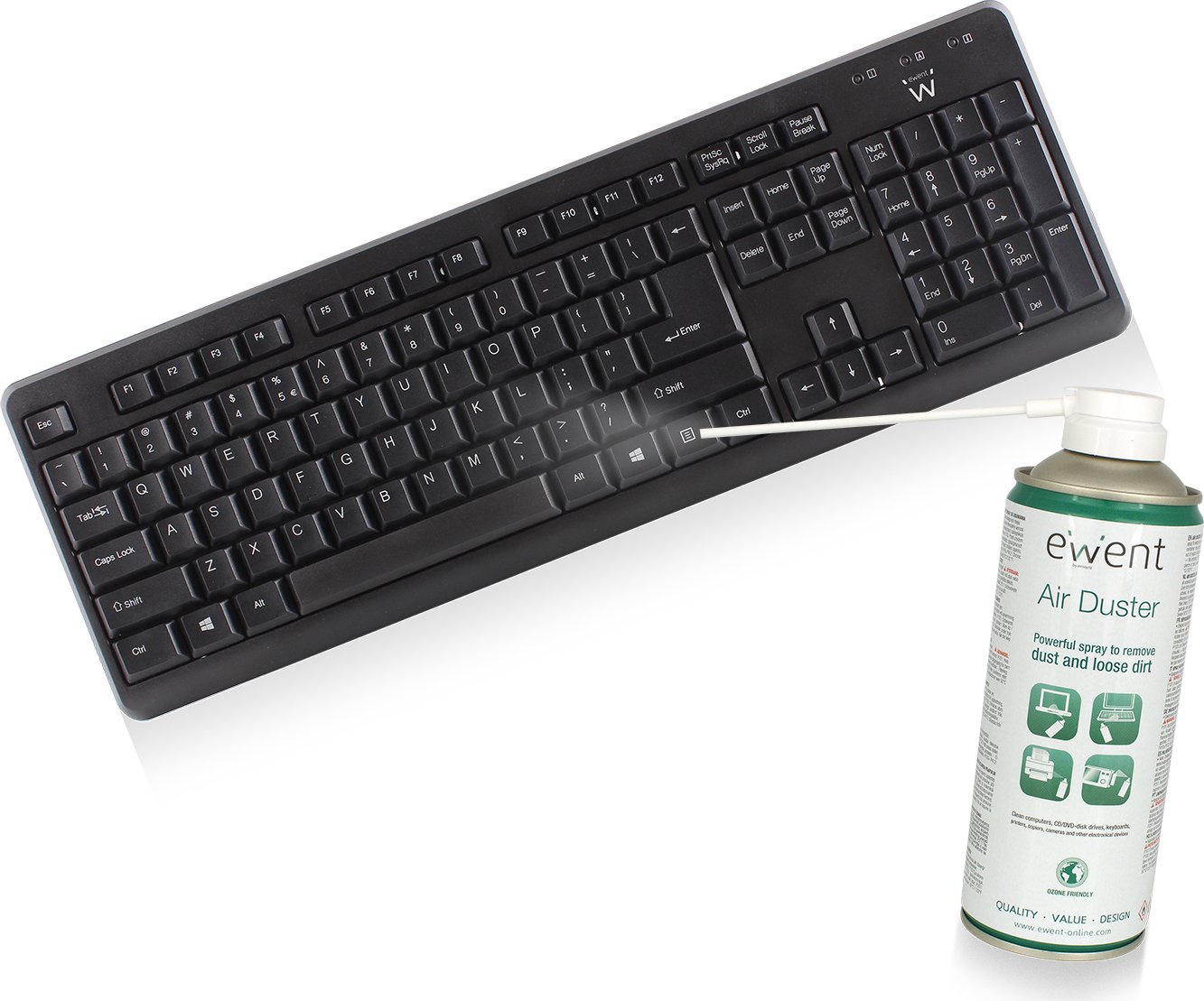 El limpiador de Aire EW5601 es un potente y efectivo espray que remueve efectivamente la suciedad y el polvo de los teclados, impresoras y otros equipamientos electrónicos. El Limpiador de Aire limpia largas superficies y pequeños corners. Solo removiendo la suciedad de su Teclado, usted no solo trabajará más comodamentes en su trabajo, si no que prolongará la vida de su productos. Lo mismo que lo de sus valiosos productos electronicos.