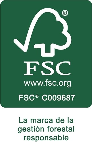 Este producto cuenta con el Certificado FSC®: producto fabricado con cartón 100% reciclado y 100% recicable. Impreso con tintas a base de agua