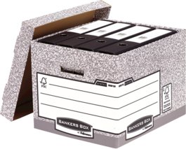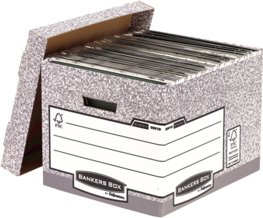 Fellowes Bankers Box. Color del producto: Gris, Formato: A4. Dimensión interior (Ancho x Profundidad x Altura): 290 x 390 x 333 mm, Dimensiones (Ancho x Profundidad x Altura): 292,2 x 404 x 335 mm. Cantidad por paquete: 1 pieza(s)Marca: