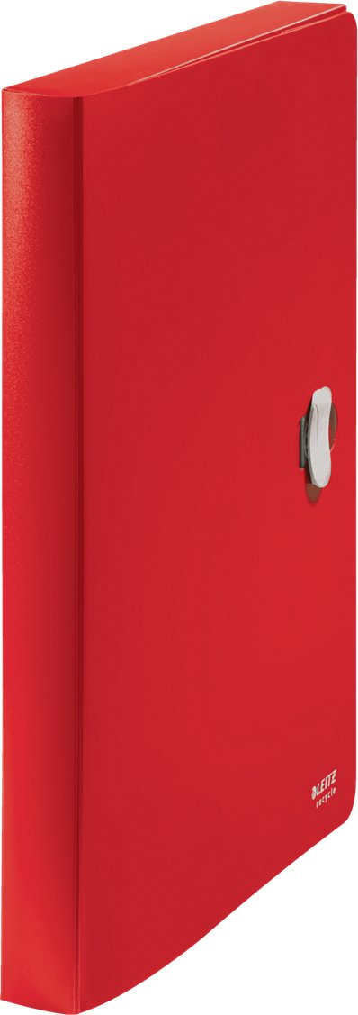 Leitz 46230025. Capacidad máxima: 250 hojas, Color del producto: Rojo, Material: Polipropileno (PP). Ancho: 254 mm, Profundidad: 330 mm, Altura: 38 mm. Cantidad por paquete: 1 pieza(s). Certificados de sostenibilidad: Blue AngelMarca:
