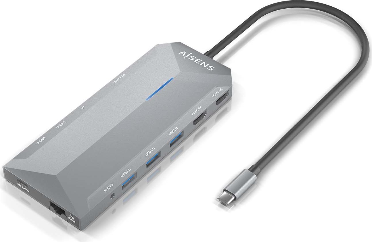 Aisens Usb-c Dock 12 En 1, Usb-c A 2xhdmi, 1xrj45, 3xusb-a, 2xusb-c, 1xusb-c Pd, 1xaudio, 1xsd, 1xmicro Sd, Gris, 30cm