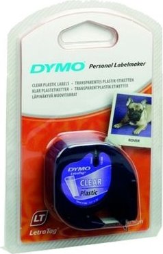 Cinta Rotuladora Autoadhesiva Dymo Plastico Negro Transparente 12mm X 4 Metros Para Rotuladoras Letratag S0721530