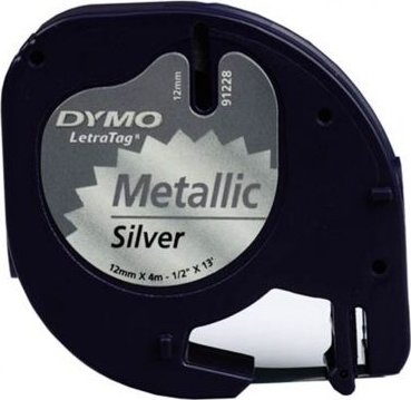 Cinta Rotuladora Metalizada Autoadhesiva Dymo 12mm X 4 Metros De Longitud Para Rotuladoras Letratag 000941