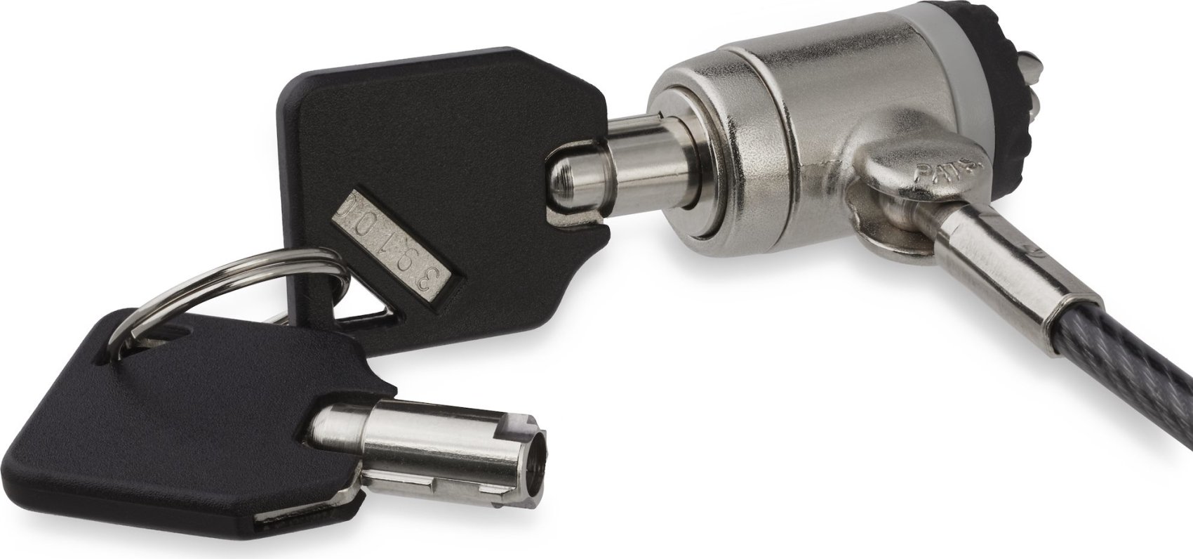 - Compatible con ordenadores portátiles, replicadores de puertos, monitores, proyectores u otro equipo informático que tenga una ranura Kensington de bloqueo ("K-Slot", en inglés)