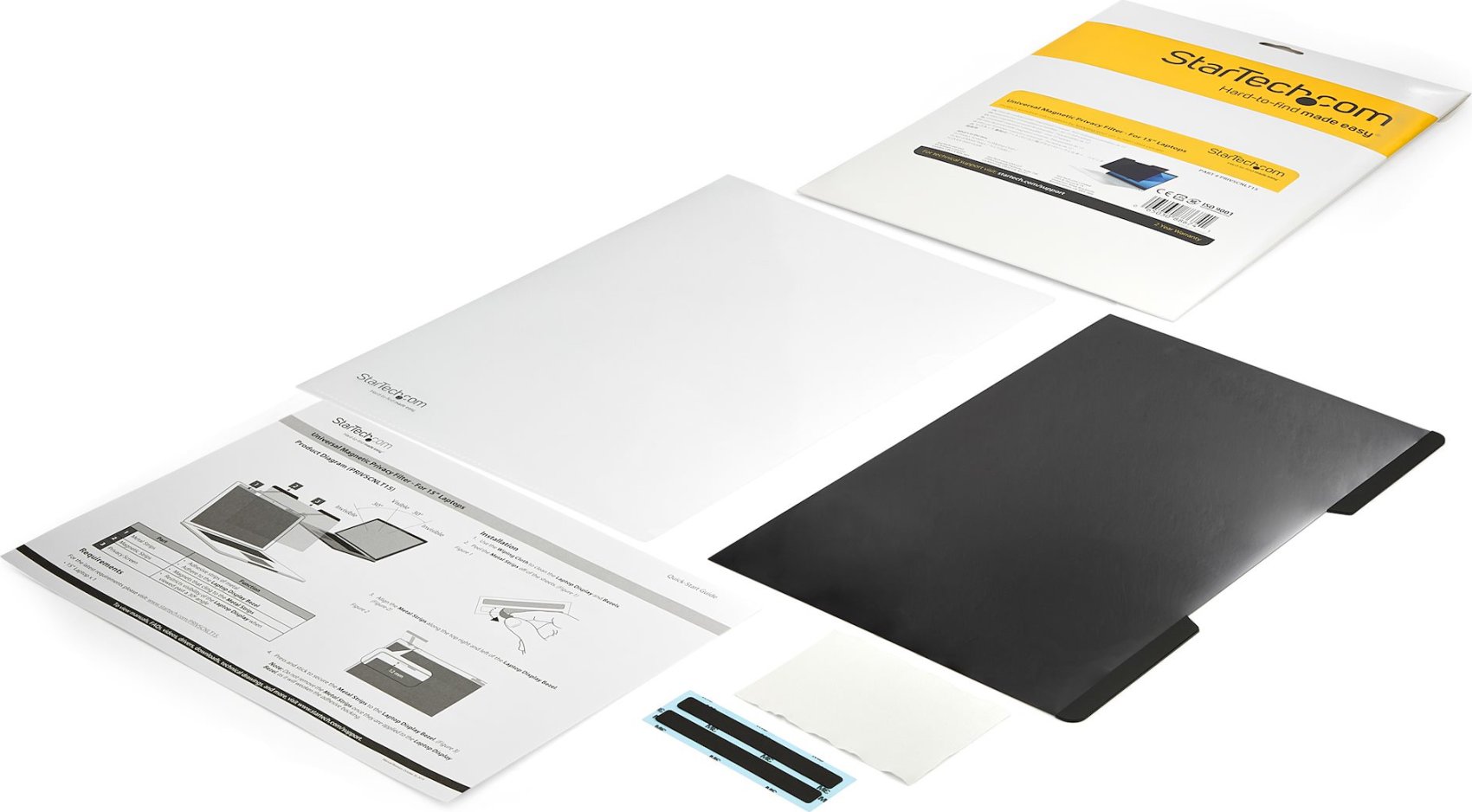 Filtro de privacidad para portátiles Reducción de la luz azul Mate o brillante Garantía de 2 añosFácil instalación gracias a las barras magnéticasEl filtro de privacidad del ordenador portátil se puede instalar y desinstalar fácilmente. Solo tiene que colocar las tiras magnéticas adhesivas al marco de su pantalla y luego alinear el filtro de privacidad con las tiras. Este filtro de privacidad también es reversible. La cara mate elimina los reflejos y la cara brillante aumenta la claridad. El filtro de privacidad para ordenador portátil se puede instalar y desinstalar fácilmente. Solo tiene que colocar las tiras magnéticas adhesivas al marco de su pantalla y luego alinear el filtro de privacidad del portátil con las tiras. Este filtro oscuro de privacidad también es reversible. La cara mate elimina los reflejos y la cara brillante aumenta la claridad. Para que su ordenador portátil cambie a modo de suspensión, es necesario quitar el filtro de privacidad. Se incluye una funda protectora para evitar daños en el filtro de privacidad cuando no se utilice. El filtro de privacidad se puede limpiar muy fácilmente al retirarlo de la pantalla del ordenador portátil.Proteja su privacidadEl filtro de privacidad para ordenador portátil es una buena inversión si desea mantener a salvo la confidencialidad del contenido de su pantalla. Es una forma práctica que resulta económica de proteger su información confidencial, propiedad intelectual o cualquier otro tipo de datos. Ya sea al desplazarse o viajar, trabajar en la oficina o mientras se toma un café en un concurrido local público, podrá tener la plena seguridad de que el contenido de su pantalla está protegido, gracias al ángulo de visualización de +/- 30 grados.Reducción de luz azulEl filtro de privacidad de la pantalla está diseñado para reducir la luz azul (longitud de onda de 390nm a 480nm), la cual puede causar esfuerzo visual y afectar sus ciclos de sueño.Favorito de los profesionales de informática desde 1985StarTech.com somete todos sus productos a pruebas sobre compatibilidad y rendimiento, a fin de garantizar que cumplen o sobrepasan las normas de la industria, para así ofrecer productos de la más alta calidad a los profesionales de informática. Los asesores técnicos locales de Startech.com tienen una amplia experiencia con los productos y trabajan directamente con los ingenieros de Startech.com para ofrecer a los clientes asistencia preventa y postventa.Producto avalado por la garantía de 2 años de StarTech.com y con soporte técnico gratuito de por vida.The StarTech.com Advantage