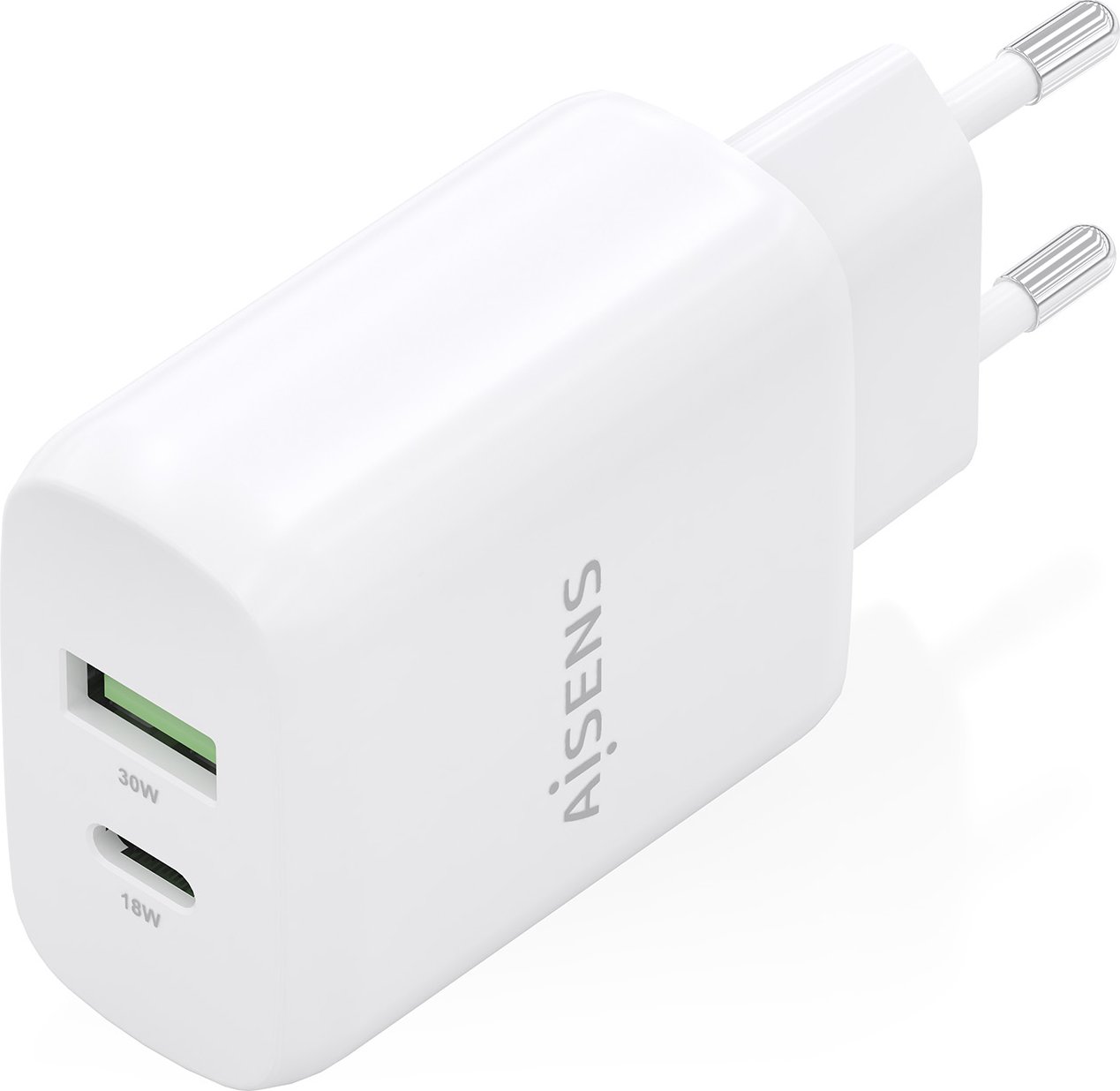 AISENS A110-0923. Tipo de cargador: Interior, Alimentación: Corriente alterna, Compatibilidad del cargador: Cámara digital, MP3, MP4, Teléfono móvil, Navegante, Portátil, Consola de juegos portátil,.... Voltaje de entrada: 100 - 240 V, Voltaje de salida máximo: 20 V. Cantidad de puertos USB 2.0: 1, Número de puertos USB Tipo C: 1, Carga rápida, Funciones de protección de poder: Sobrecarga, Cortocircuito. Color del producto: Blanco