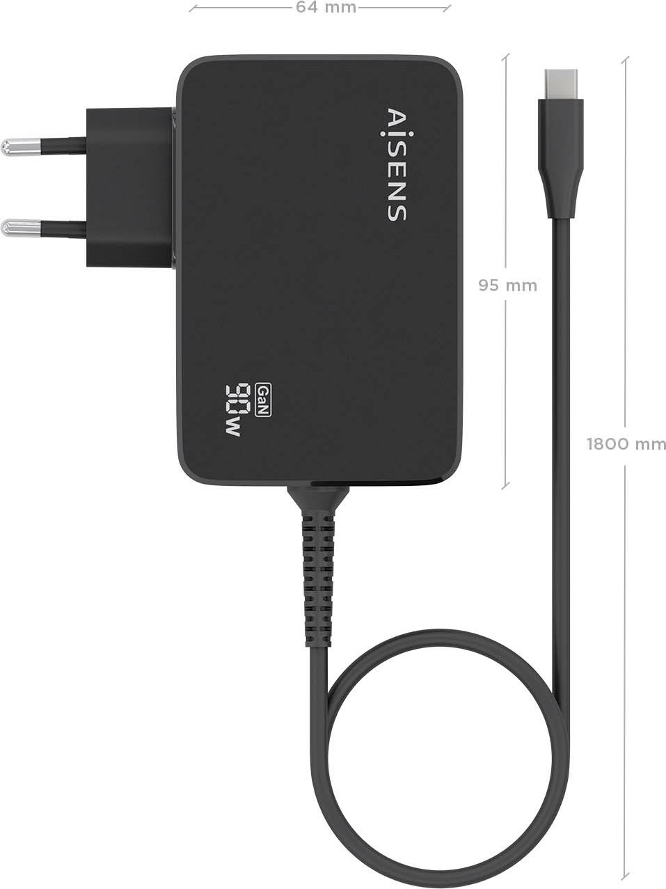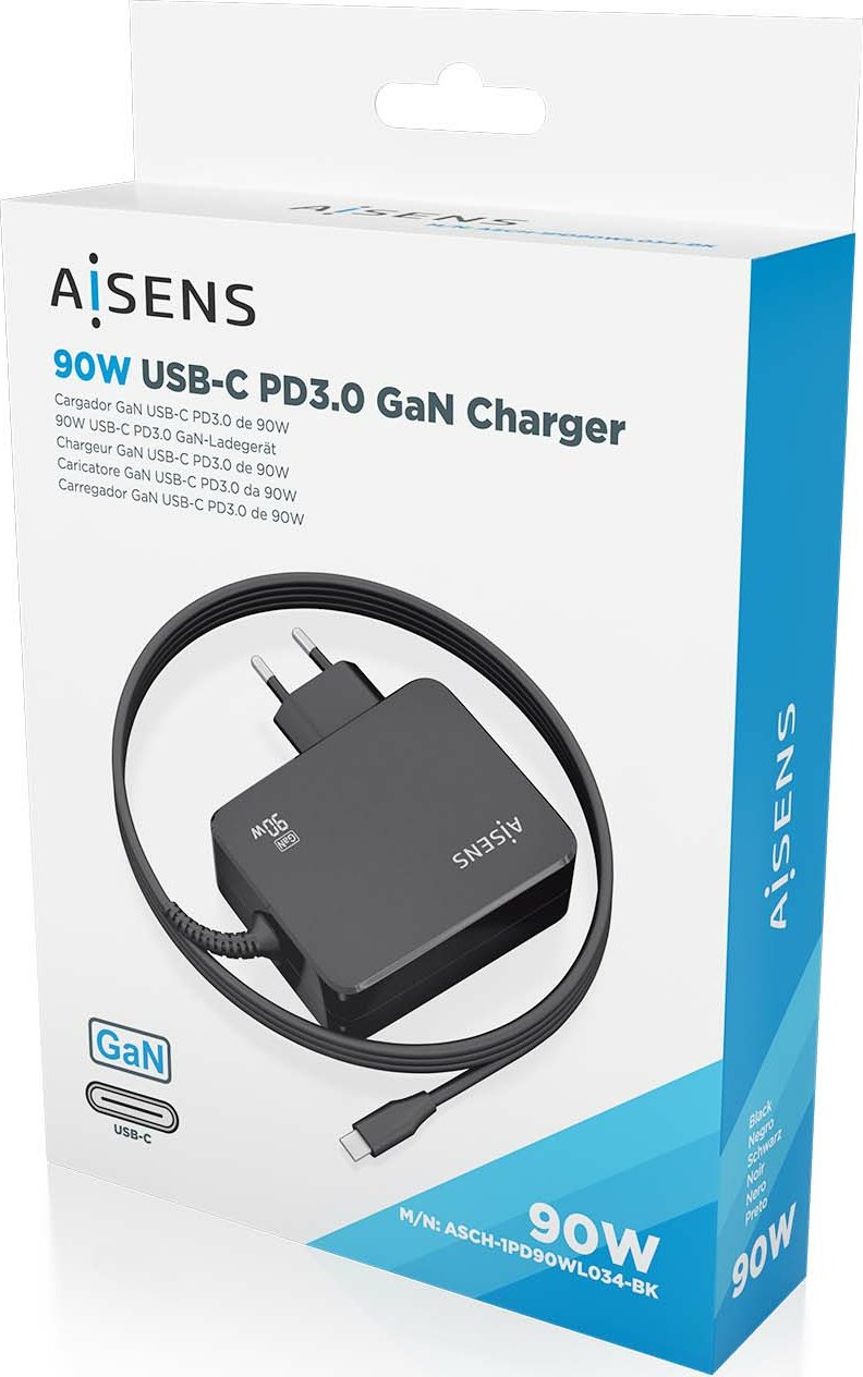 Aisens - Cargador GaN 90W PD3.0 1xUSB-C 1.8m, Negro