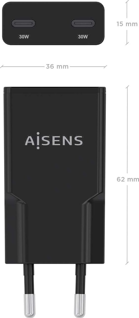 Aisens Asch-30w2p049-bk Cargador De Dispositivo Móvil Cámara Digital, Mp3, Mp4, Teléfono Móvil, Navegante, Portátil, Consola De Juegos Portátil,