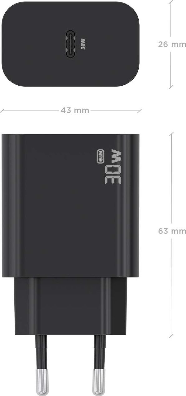 - Cargador GaN 30W, 1xUSB-C PD3.0, Negro