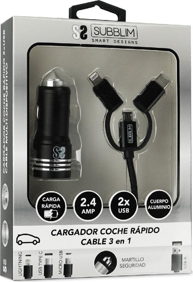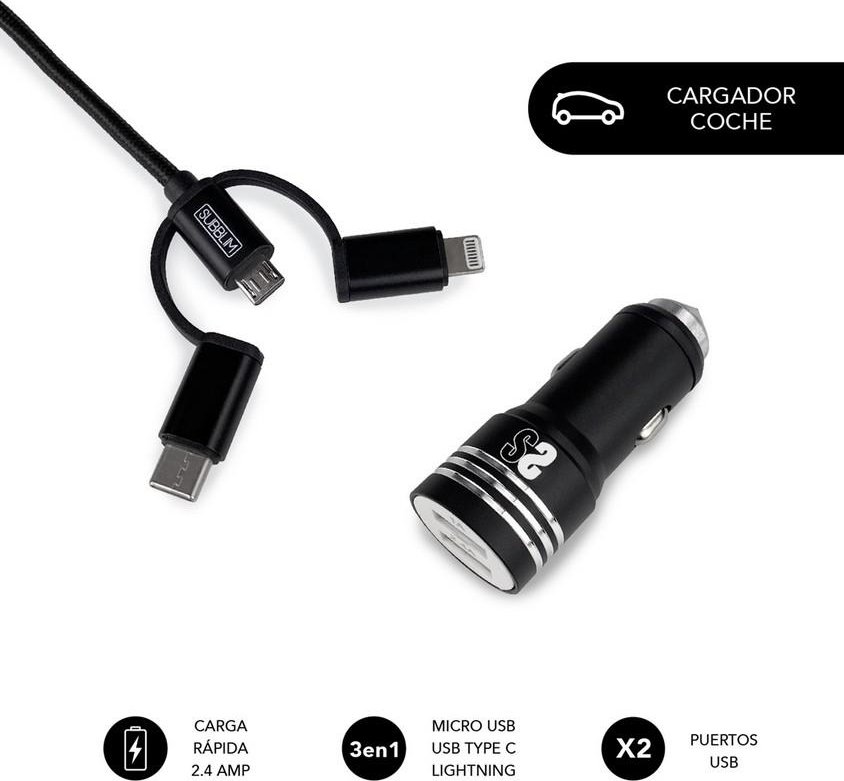 Cargador De Coche Subblim Usb-a 3en1 (SUB-CHG-4CC002)