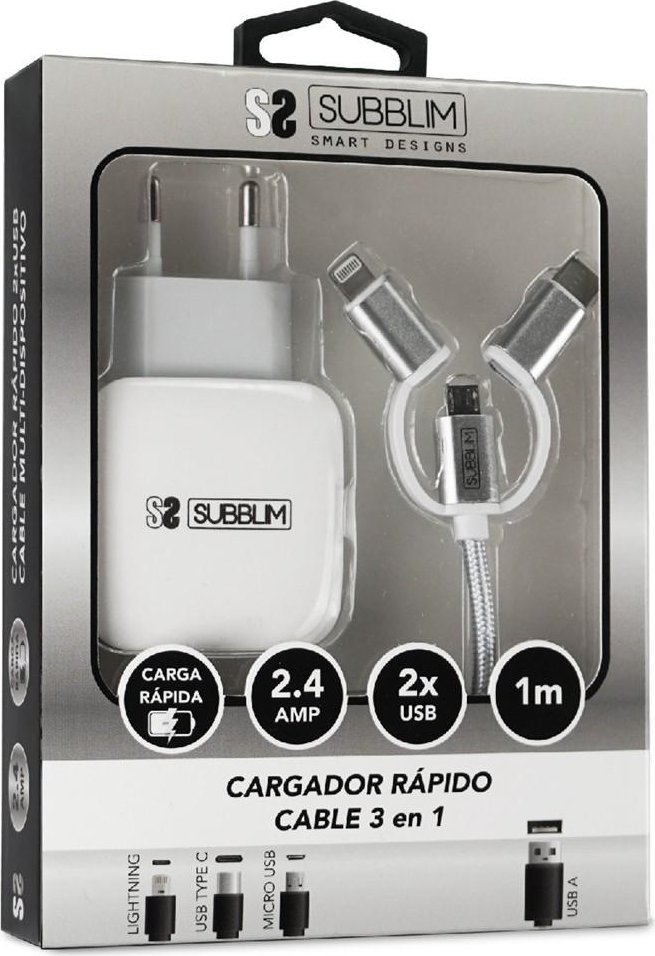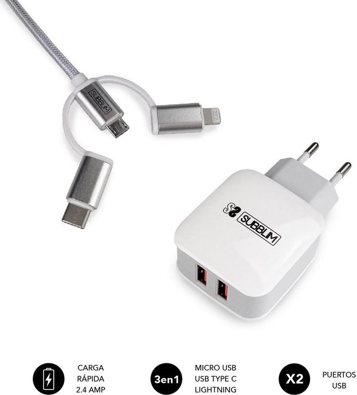 Cargador Pared Subblim Usb Cable 3en1 (SUB-CHG-1ZWC01)