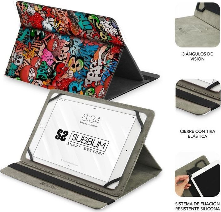 Funda Tablet Subblim Trendy Graffiti Universal 10.1p Exterior Acabado En Pu Posicion Stand 3 Angulo Cierre Banda Sub-cut-4tc010