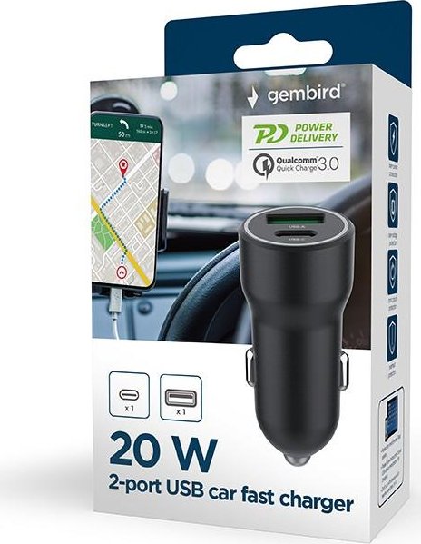 Gembird Ta-uc-a2pdqc20-car-01 Cargador De Dispositivo Móvil Universal Negro Encendedor De Cigarrillos Carga Rápida Auto