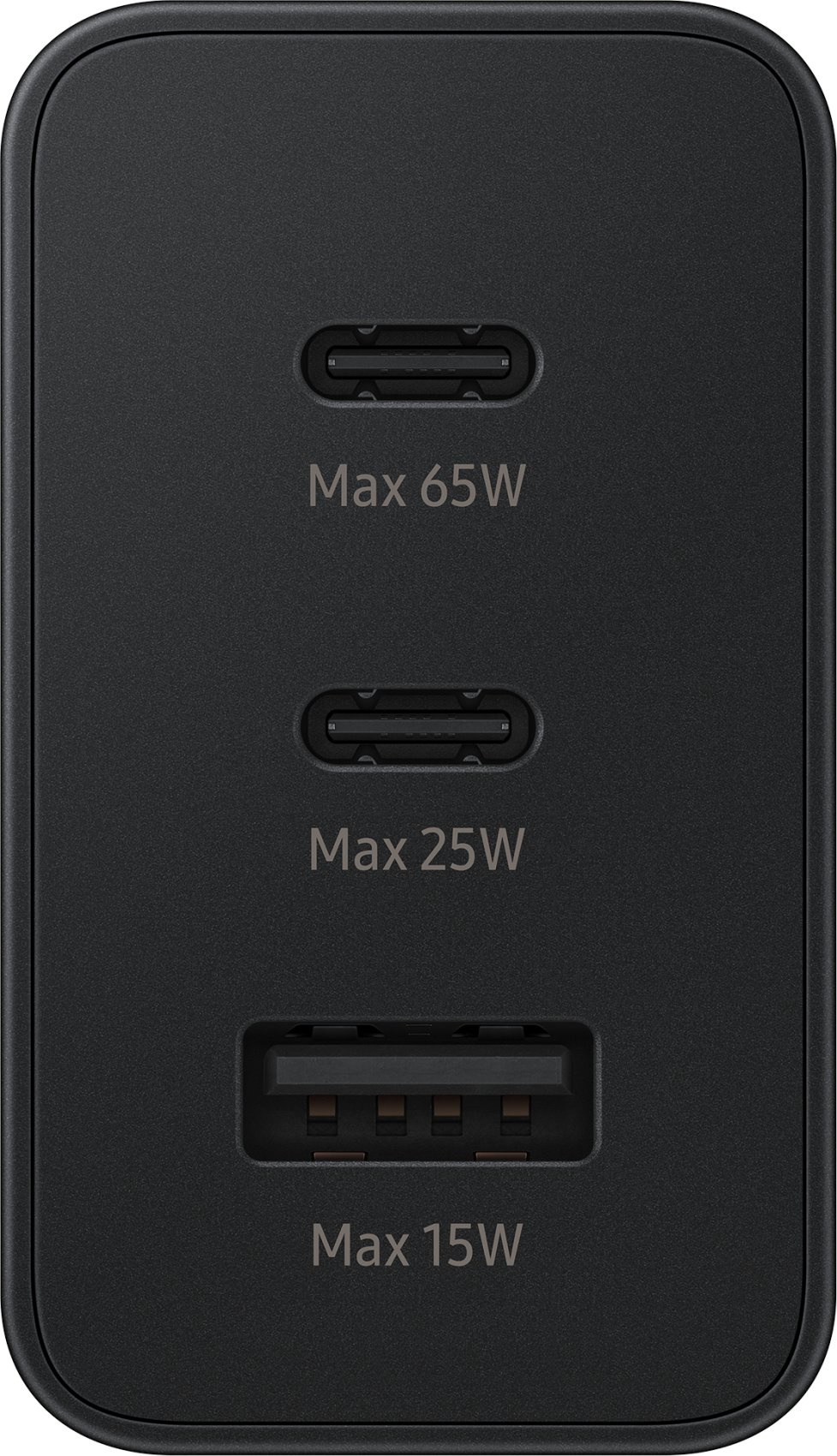 Samsung EP-T6530. Tipo de cargador: Interior, Alimentación: Corriente alterna, Compatibilidad del cargador: Auriculares, Auriculares, Netbook, Portátil, Smartphone, Reloj inteligente, Tableta. Voltaje de entrada: 100/240 V, Voltaje de salida máximo: 20 V. Número de puertos USB Tipo C: 2. Color del producto: Negro