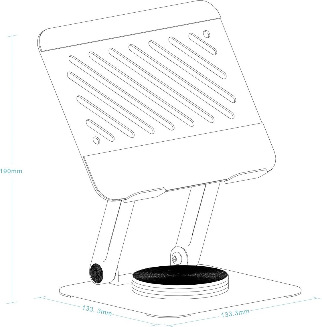 - Soporte de Sobremesa con rotación 360° y ajustable para dispositivos de hasta 13”, Color Plata