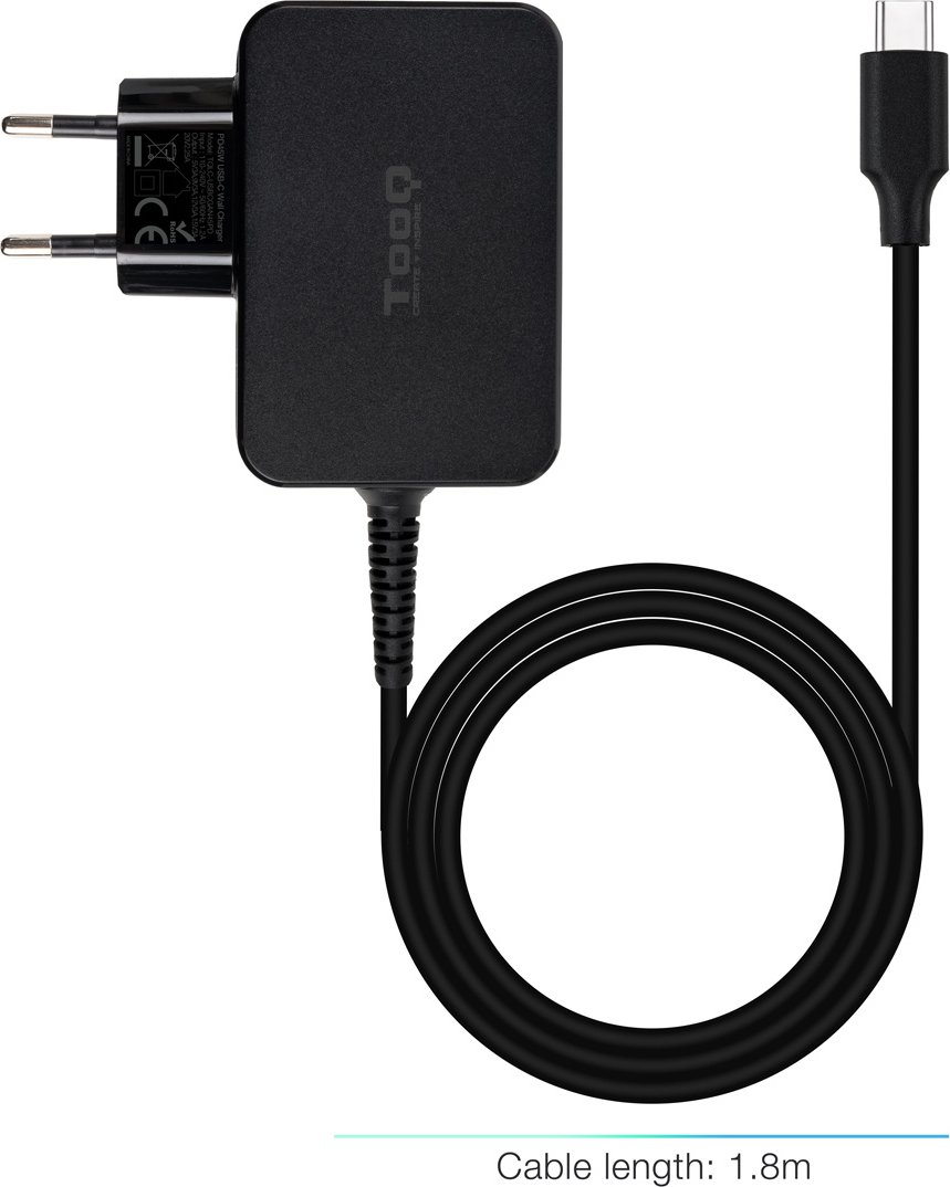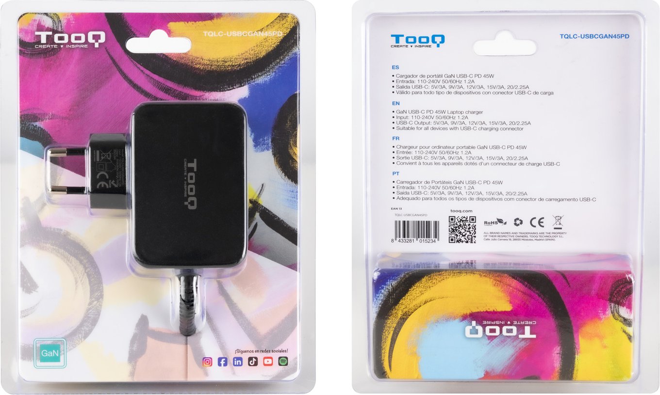 Tooq Cargador De Portátil Gan Usb-c Pd 45w, Negro