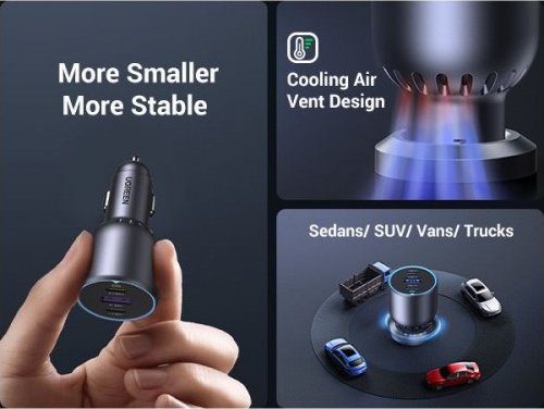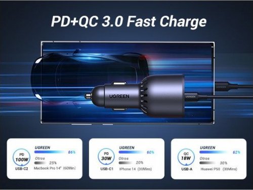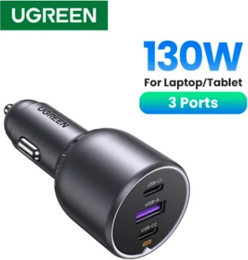 Ugreen 130w 3-port Fast Car Char Gray Auriculares, Ordenador Portátil, Teléfono Móvil, Portátil, Batería Portátil, Teléfono Gris Encendedor De