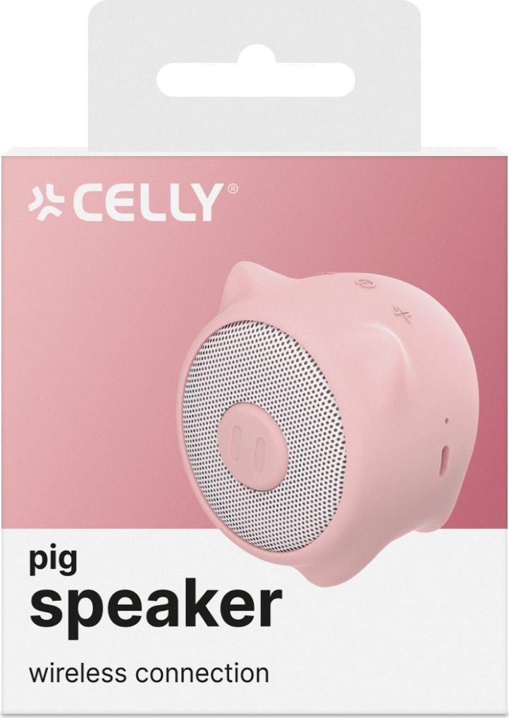 Celly WSPIG. Diámetro del conductor: 5 cm. Potencia estimada RMS: 3 W, Obstrucción: 3 Ω, Sensibilidad: 79 dB. Tecnología de conectividad: Inalámbrico, Conector USB: USB Tipo C. Tipo de producto: Altavoz para fiestas, Color del producto: Rosa. Tecnología de batería: Polímero de litio, Capacidad de batería: 300 mAh