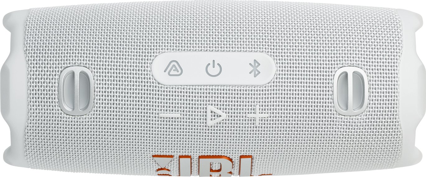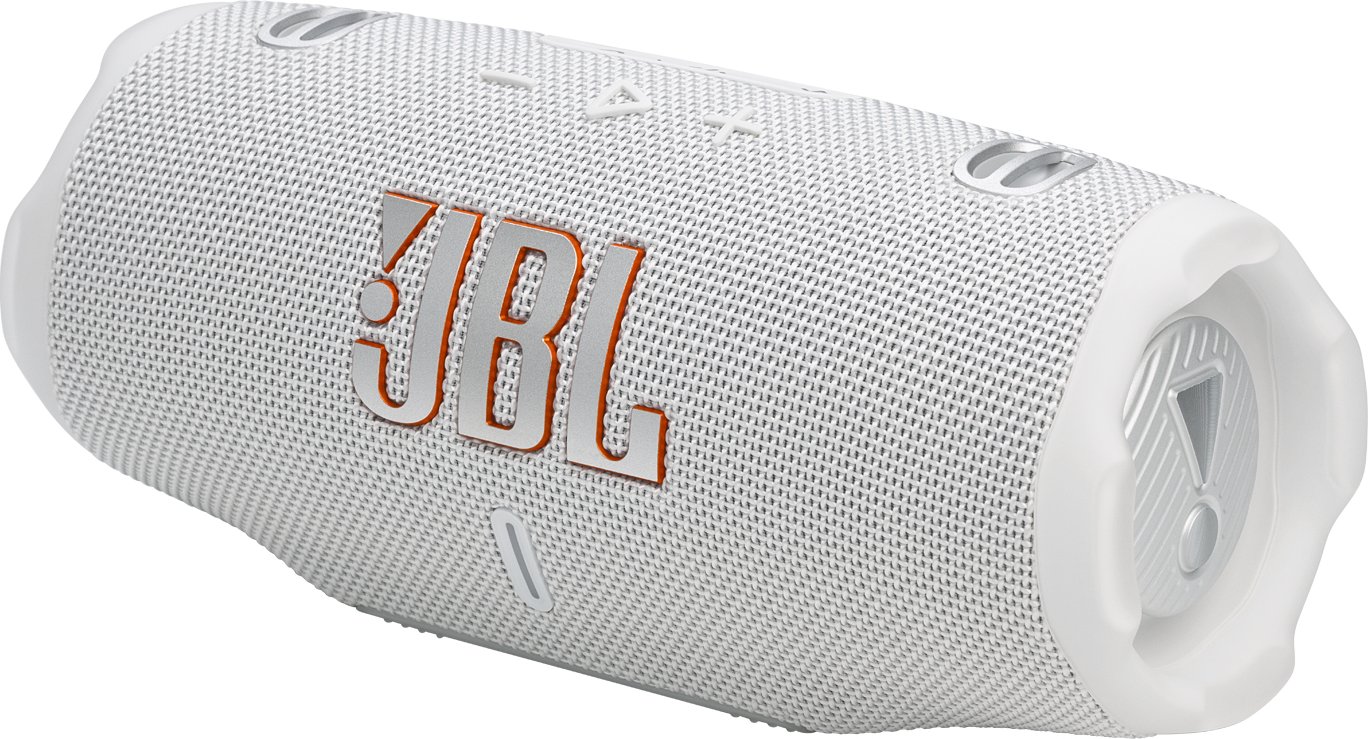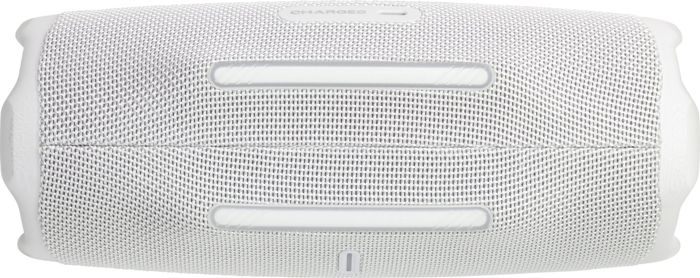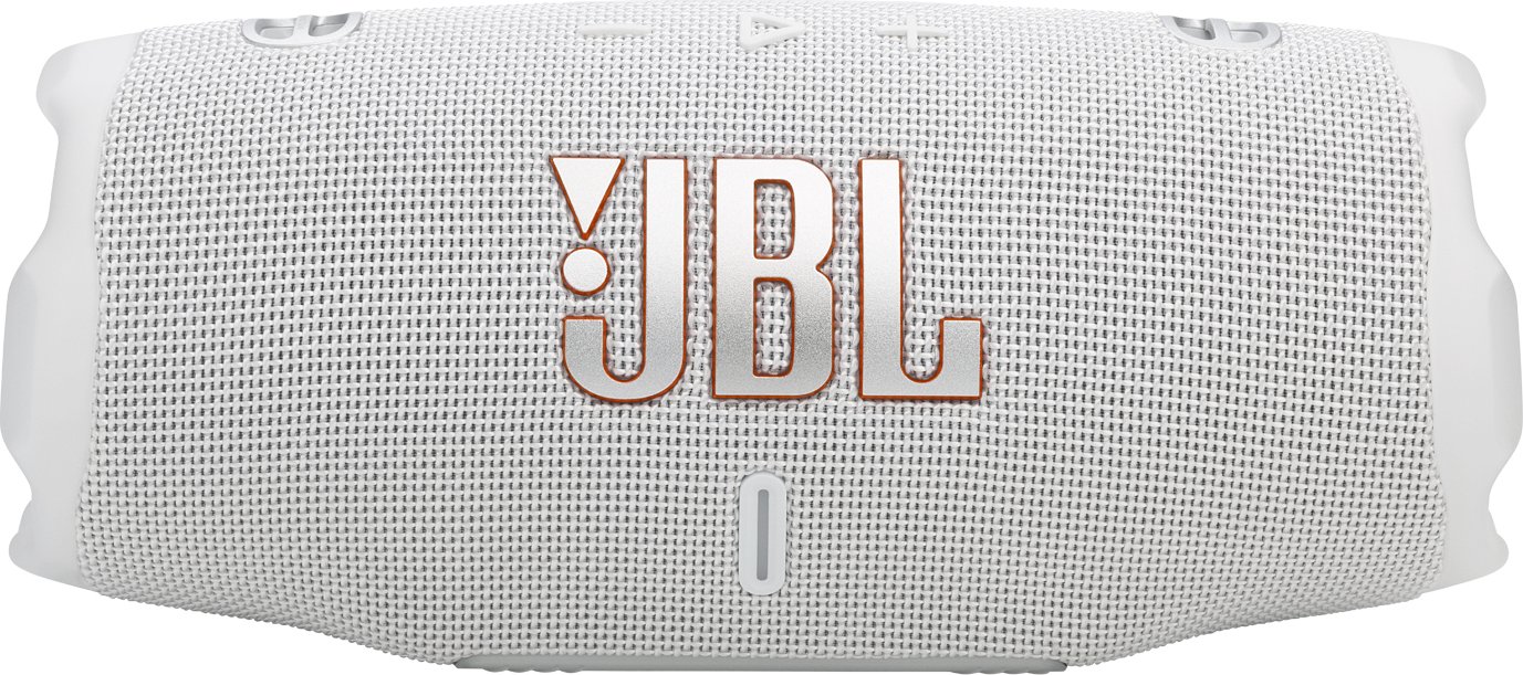 JBL Charge 6. Tipo de altavoces: De 2 vías, Diámetro del tweeter: 2 cm. Potencia estimada RMS: 45 W, Potencia RMS del altavoz de graves (woofer): 30 W, Potencia RMS del altavoz de agudos (tweeter): 10 W. Tecnología de conectividad: Inalámbrico, Perfiles de Bluetooth: A2DP, AVRCP, Conector USB: USB Tipo C. Color del producto: Blanco, Diseño de producto: Cilindro, Control de volumen: Botones. Uso recomendado: Universal