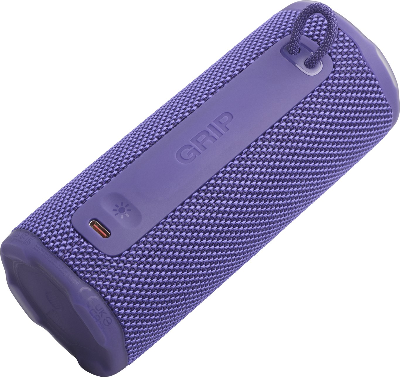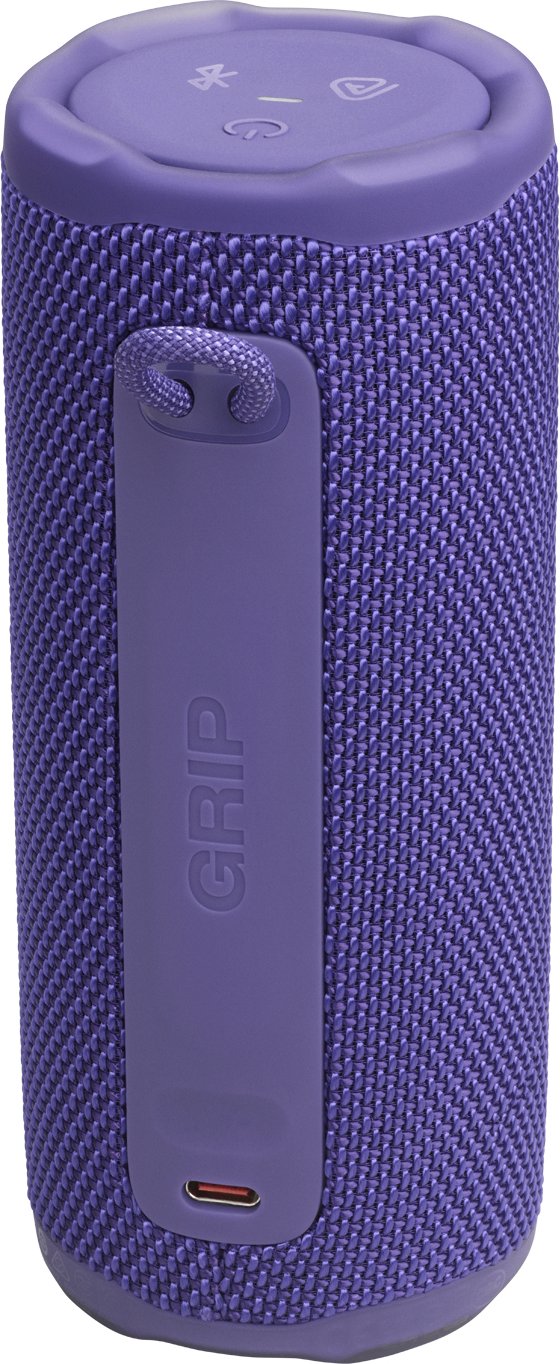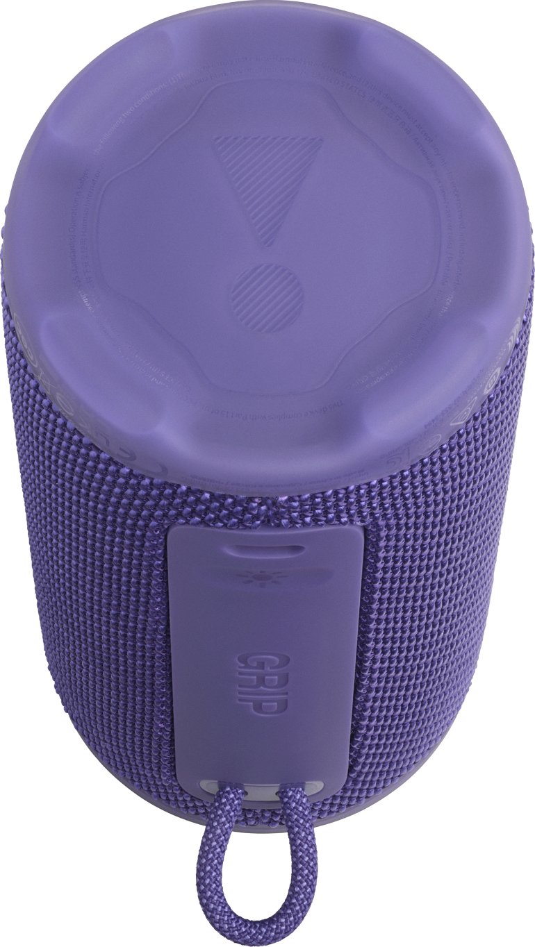 JBL Grip. Potencia estimada RMS: 16 W, Rango de frecuencia: 70 - 20000 Hz, Relación señal/ruido (SNR): 80 dB. Tecnología de conectividad: Inalámbrico, Alcance de frecuencia: 2,4 - 2,483 GHz, Perfiles de Bluetooth: A2DP, AVRCP. Tipo de producto: Altavoz monofónico portátil, Color del producto: Púrpura, Control de volumen: Botones. Uso recomendado: Teléfono móvil/Smartphone. Tipo de batería: Batería integrada, Potencia de carga requerida (mín.): 7,5 W, Potencia de carga requerida (máx.): 15 W