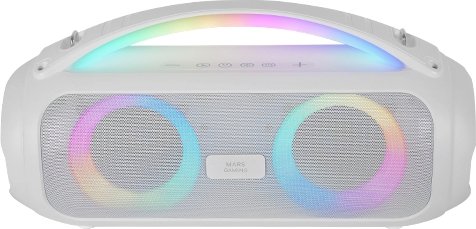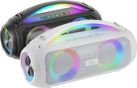 - MS-PULSE, Altavoz Bluetooth Portátil 50W RMS, Iluminación RGB, 2 Drivers Activos 93mm + 2 Drivers Pasivos Ultra-Bass, Función Manos Libres, USB / MicroSD / AUX / FM, Asa y Correa, Blanco