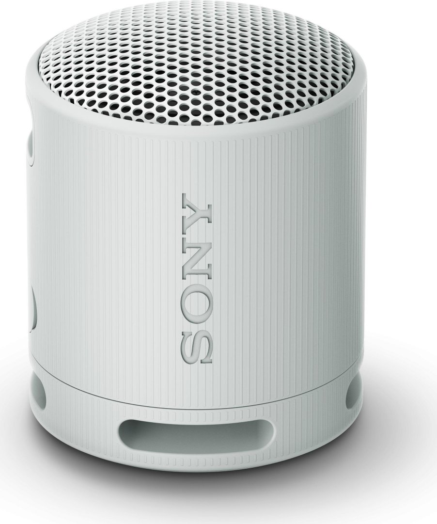 Sony SRS-XB100. Tecnología de conectividad: Inalámbrico, Perfiles de Bluetooth: A2DP, HFP, AAC, AVRCP, SBC, Conector USB: USB Tipo C. Tipo de producto: Altavoz monofónico portátil, Color del producto: Gris, Diseño de producto: Cilindro. Uso recomendado: Universal, Formatos de audio soportados: SBC, AAC. Tipo de batería: Batería integrada, Autonomía: 16 h, Consumo energético: 2,5 W. Peso: 274 g, Ancho: 76 mm, Profundidad: 95 mm