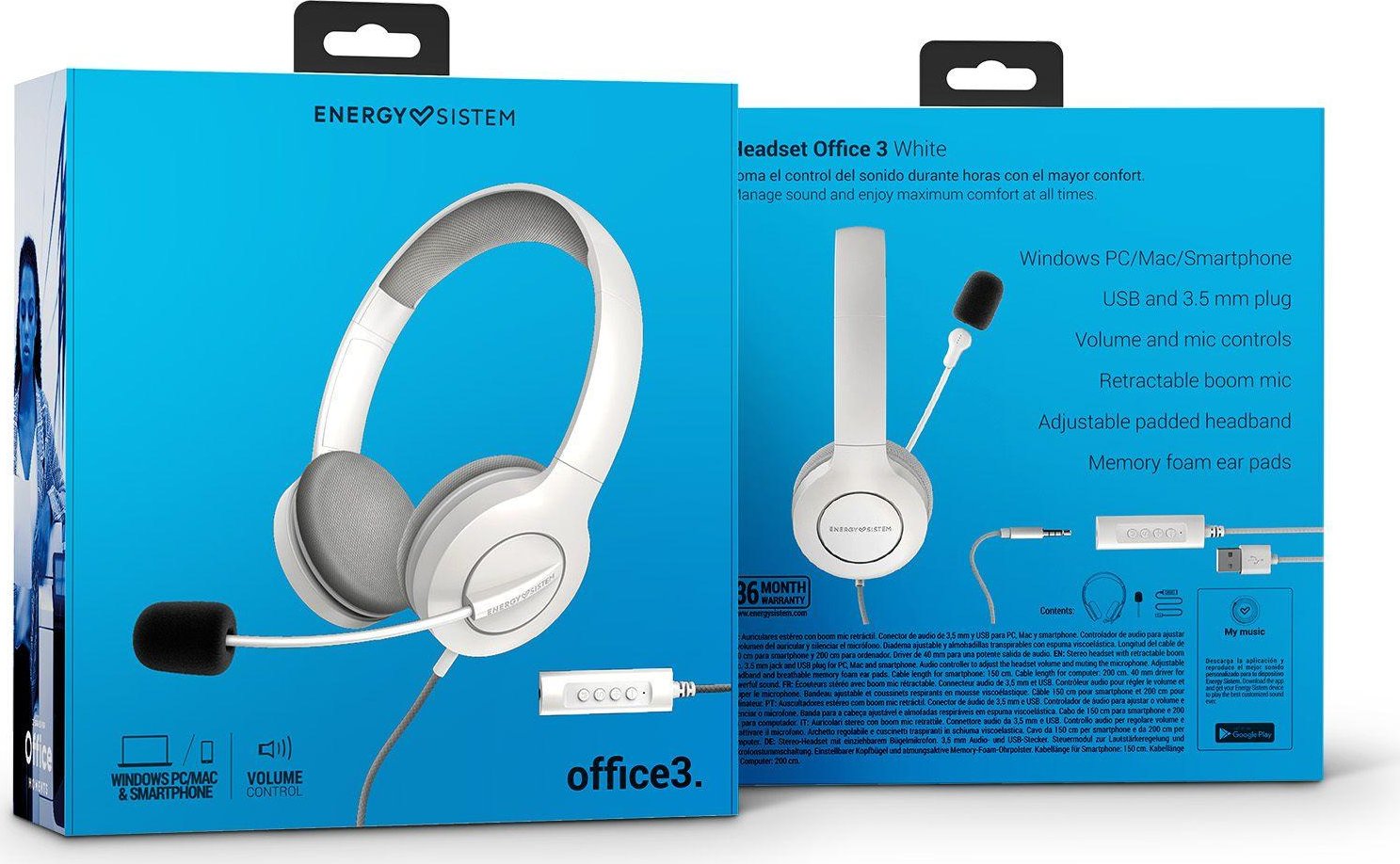 Energy Sistem Auriculares Office 3 Blanco Supraural 40mm Jack 3.5 Antipop 20hz 32ohms