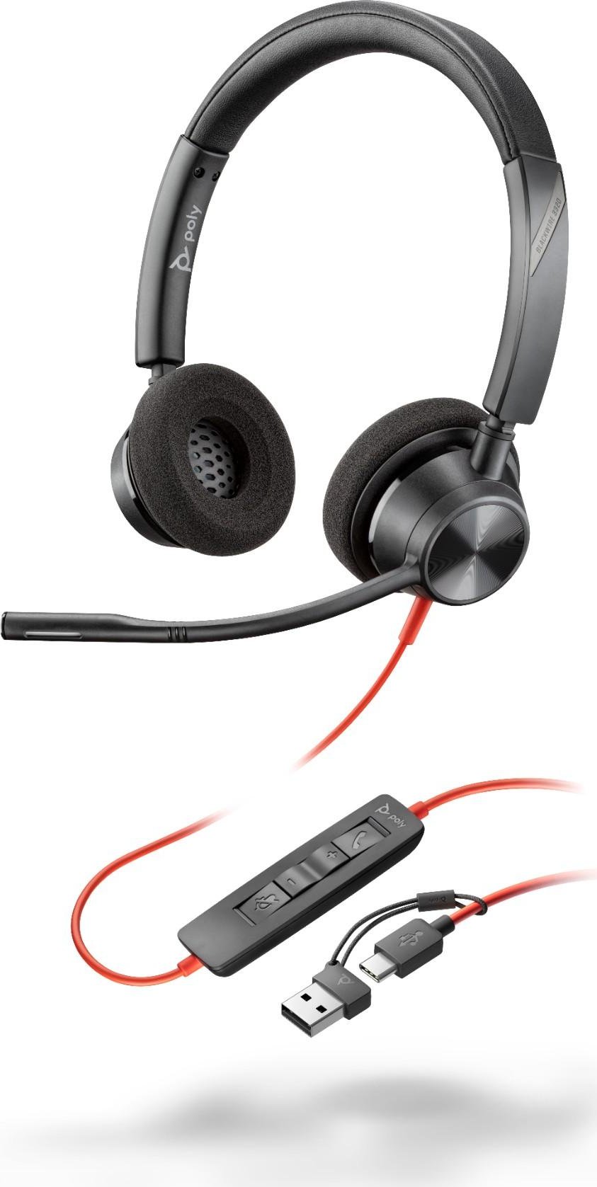 - Auriculares estéreo Poly Blackwire 3320 USB-C + Adaptador USB-C/A