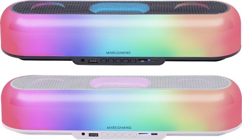 - MSB-ORB, Altavoz Portátil + Barra de Sonido 20W, Iluminación Orbilight RGB 360°, Soundbar con Sistema de Triple Driver, Altavoces Gaming Bluetooth 5.3 / USB / MicroSD / AUX / FM, Blanco