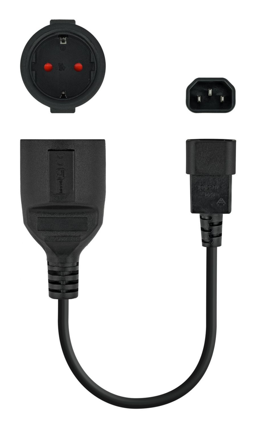 - Cable Adaptador C14/M a CEE7/H, 16A, 50 cm