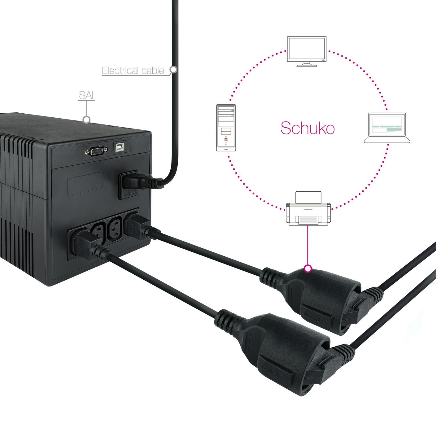 Cable adaptador de corriente para SAIs que no dispongan de tomas Schuko.