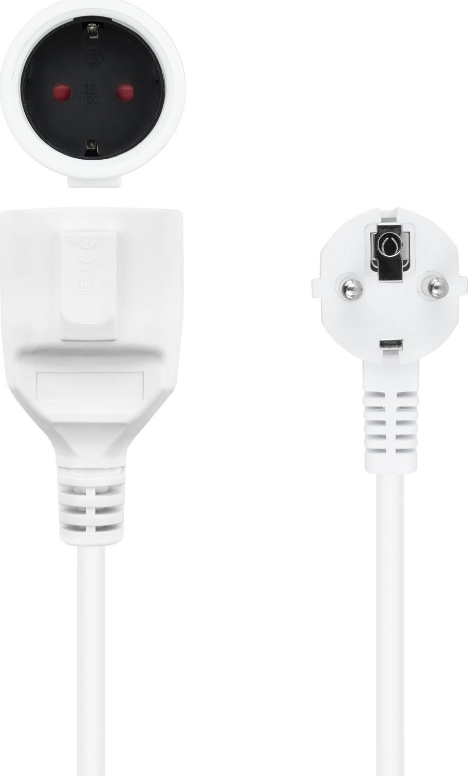 Nanocable Cable de Alimentación Alargador, Blanco, 5 m. Longitud de cable: 5 m, Colocación soportada: Interior, Tipo de salida AC: Tipo F. Cantidad de salidas AC: 1 salidas AC. Voltaje de entrada AC: 120 - 250 V, Potencia máx. de entrada: 4000 W, Máxima corriente: 16 A. Número de productos incluidos: 1 pieza(s), Tipo de embalaje: Bolsa de plástico, Ancho del paquete: 350 mm