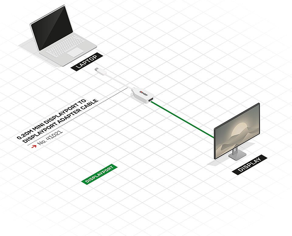 Lindy 41021. Longitud de cable: 0,15 m, Conector 1: Mini DisplayPort, Conector 2: DisplayPort