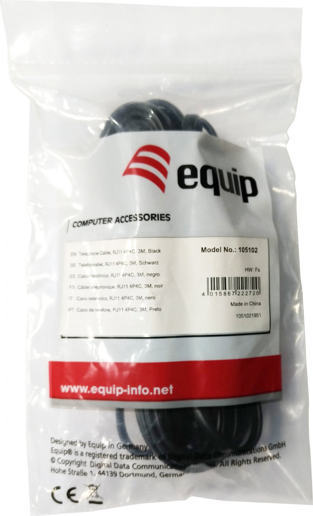 Equip 105104. Longitud de cable: 5 m, Conector 1: RJ-11, Conector 2: RJ-11. Tipo de embalaje: Ampolla