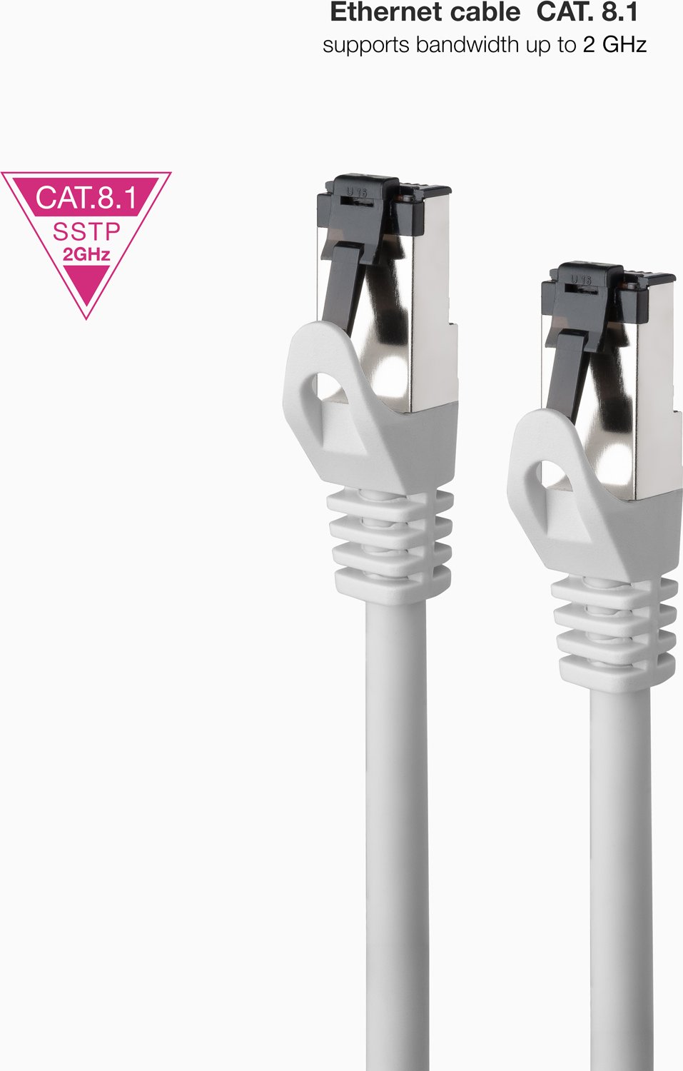 Cable de red CAT.8.1 SSTP AWG26 100% cobre con conector RJ45 en ambos extremos.