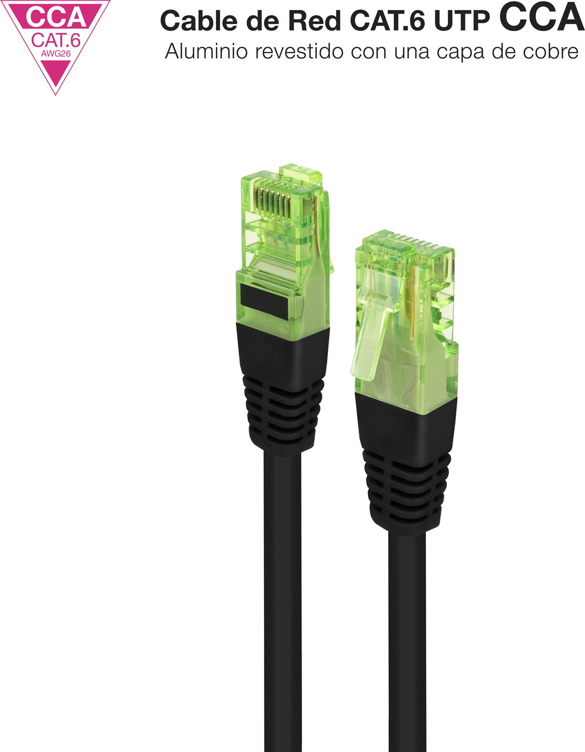 - Cable de Red Latiguillo RJ45 CAT.6 UTP AWG26 CCA, Negro, 25 m