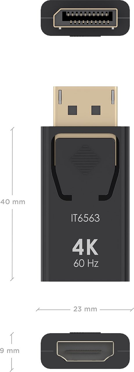 - Conversor DISPLAYPORT macho en un extremo y HDMI hembra en el otro