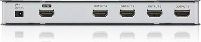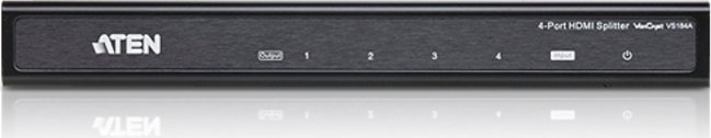 ATEN Distribuidor HDMI 4K de 4 puertos. Tipo de puerto de vídeo: HDMI, Salida de vídeo: 4x HDMI. Máxima resolución: 4096 x 2160 Pixeles, Color del producto: Negro, Tipo HD: 4K Ultra HD. Voltaje de entrada AC: 5 V, Consumo energético: 6,02 W. Ancho: 80 mm, Profundidad: 200 mm, Altura: 25 mm. Cantidad por paquete: 1 pieza(s), Ancho del paquete: 59 mm, Profundidad del paquete: 239 mm
