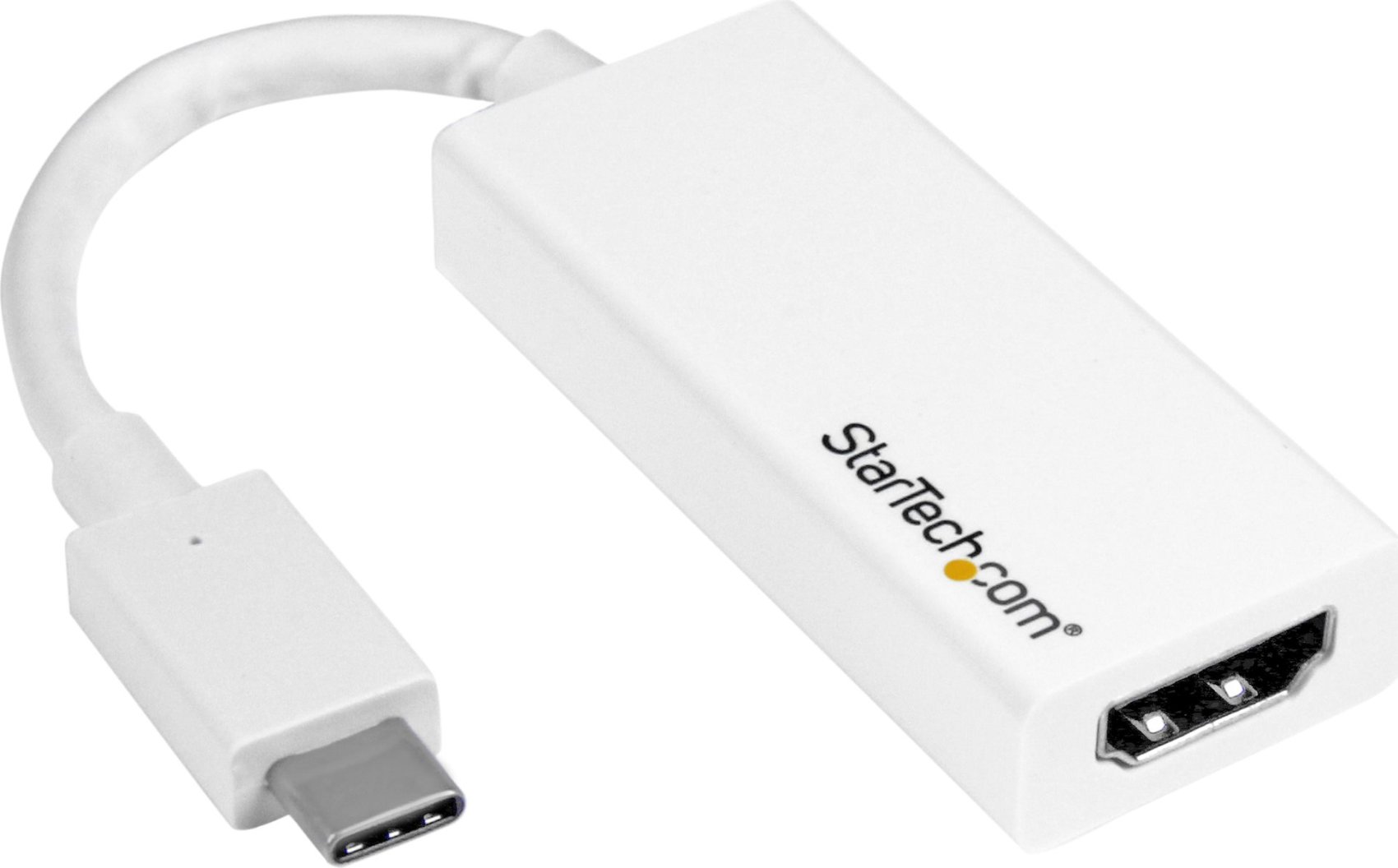 Conecte su ordenador portátil equipado con USB Type-C a una pantalla o un proyector Ultra HD 60HzEste adaptador USB-C™ a HDMI® le permite enviar vídeo y audio HDMI desde un dispositivo USB Type-C™, compatible con 4K Ultra HD a 60Hz. Este adaptador funciona con dispositivos USB-C que transmiten una señal de vídeo DisplayPort y además es compatible con puertos Thunderbolt™ 3. El adaptador de vídeo USB-C tiene un diseño elegante, de color blanco, que armoniza perfectamente con su MacBook o HP® ENVY 13 equipado con USB Type-C. Impresionante calidad de imágenes El adaptador le permite aprovechar al máximo las capacidades de vídeo integradas en su conexión USB Type-C, a fin de ofrecer la asombrosa calidad de imágenes UHD a su pantalla 4K 60Hz. Esto facilita el trabajo multitarea, así como el trabajo con las más inimaginables aplicaciones que requieren un uso intensivo de recursos. Este adaptador le permite lograr una resolución de salida de hasta 3840 x 2160p, a 60Hz, lo cual resulta perfecto para llevar a cabo tareas que requieren alta resolución, como la visualización y edición de vídeos 4K. Además, el adaptador es retrocompatible con pantallas a 1080p, lo cual lo convierte en el accesorio ideal para aplicaciones domésticas, de oficina u otros espacios de trabajo. El compañero de viaje ideal Su diseño de color blanco hace de este adaptador de vídeo USB-C el accesorio ideal para su MacBook equipado con USB-C. Asimismo, gracias a su diseño compacto y de peso ligero se puede llevar con facilidad dentro de la bolsa de transporte de su MacBook o cualquier otra bolsa, lo cual resulta ideal en entornos de oficina BYOD (Trae tu propio dispositivo). Así como este adaptador armoniza a la perfección con su Mac y HP ENVY, también resulta útil con cualquier ordenador equipado con USB-C que sea compatible con el modo ALT de DisplayPort, como su ordenador portátil con sistema Windows®. Sencilla conexión mediante USB Type-C Este adaptador le permite utilizar el versátil puerto USB Type-C de su dispositivo portátil. USB Type-C es un conector reversible, lo cual significa que no importa qué cara del conector se ve al insertarlo. El conector de diseño reversible facilita que se conecte siempre por la cara correcta al primer intento. Evita las molestias y la distracción de tener que intentar varias veces la conexión de su ordenador portátil a una pantalla o un proyector durante una presentación o charla a un grupo. Producto avalado por la garantía de 3 años de StarTech.com y con soporte técnico gratuito de por vida. Nota: - Para que este adaptador funcione, su dispositivo equipado con USB-C debe ser compatible con vídeo.- Es posible que este producto tenga algunos problemas de detección de la pantalla en el caso de algunos modelos Mac. En caso de problemas, póngase en contacto con nuestro equipo de asistencia técnica. Para evitar problemas de compatibilidad con los dispositivos Mac, se recomienda el producto CDP2HD4K60H.The StarTech.com Advantage