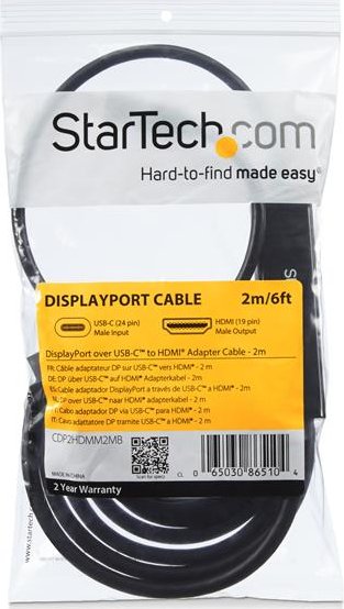 Este cable adaptador USB-C a HDMI constituye una solución práctica para la conexión directa de su dispositivo DisplayPort a través de USB Type-C con su monitor, televisor o proyector HDMI. El adaptador es compatible a distancias de hasta 1m y funciona con dispositivos USB-C compatibles con el modo Alt (alternativo) de DisplayPort, como los MacBook, ChromeBook Pixel y Dell XPS (modelos 15 y 13). También es compatible con puertos Thunderbolt 3. Instalación sin estorbo de cables Con 1 metro de longitud, este cable adaptador ofrece una conexión directa que elimina el exceso de adaptadores y cables, a fin de garantizar una instalación ordenada y profesional. Para instalaciones de mayor longitud, también ofrecemos un cable USB-C a HDMI de 2m, lo cual permite elegir la longitud más adecuada de cable para su instalación. Sencilla conexión mediante USB Type-C Este cable adaptador se conecta fácilmente, a través del versátil y práctico puerto USB Type-C de su dispositivo. USB-C es un conector reversible, lo cual significa que no importa qué cara del conector se ve al insertarlo, ya que el adaptador siempre se conecta correctamente. Esto evita las frustraciones de insertarlo incorrectamente cuando conecte su ordenador a su estación de trabajo o a una estación de trabajo compartida en la oficina. Impresionante calidad de imágenes Con una resolución cuatro veces superior a la alta definición a 1080p, las imágenes de un televisor o monitor con calidad 4K le dejarán asombrado. El cable adaptador le permite aprovechar al máximo la capacidad de vídeo integrado en su conexión USB Type-C, para reproducir la asombrosa calidad de resolución Ultra HD en su pantalla 4K. El adaptador es retrocompatible con pantallas 1080p, lo cual garantiza que el adaptador también funciona con aplicaciones HD tanto en entornos domésticos, como de oficina. El modelo CDP2HDMM1MB está avalado por la garantía de 3 años de StarTech.com y con soporte técnico gratuito de por vida. Nota: Para que este adaptador funcione, su dispositivo equipado con USB-C debe ser compatible con vídeo (modo Alt (alternativo) de DisplayPort).