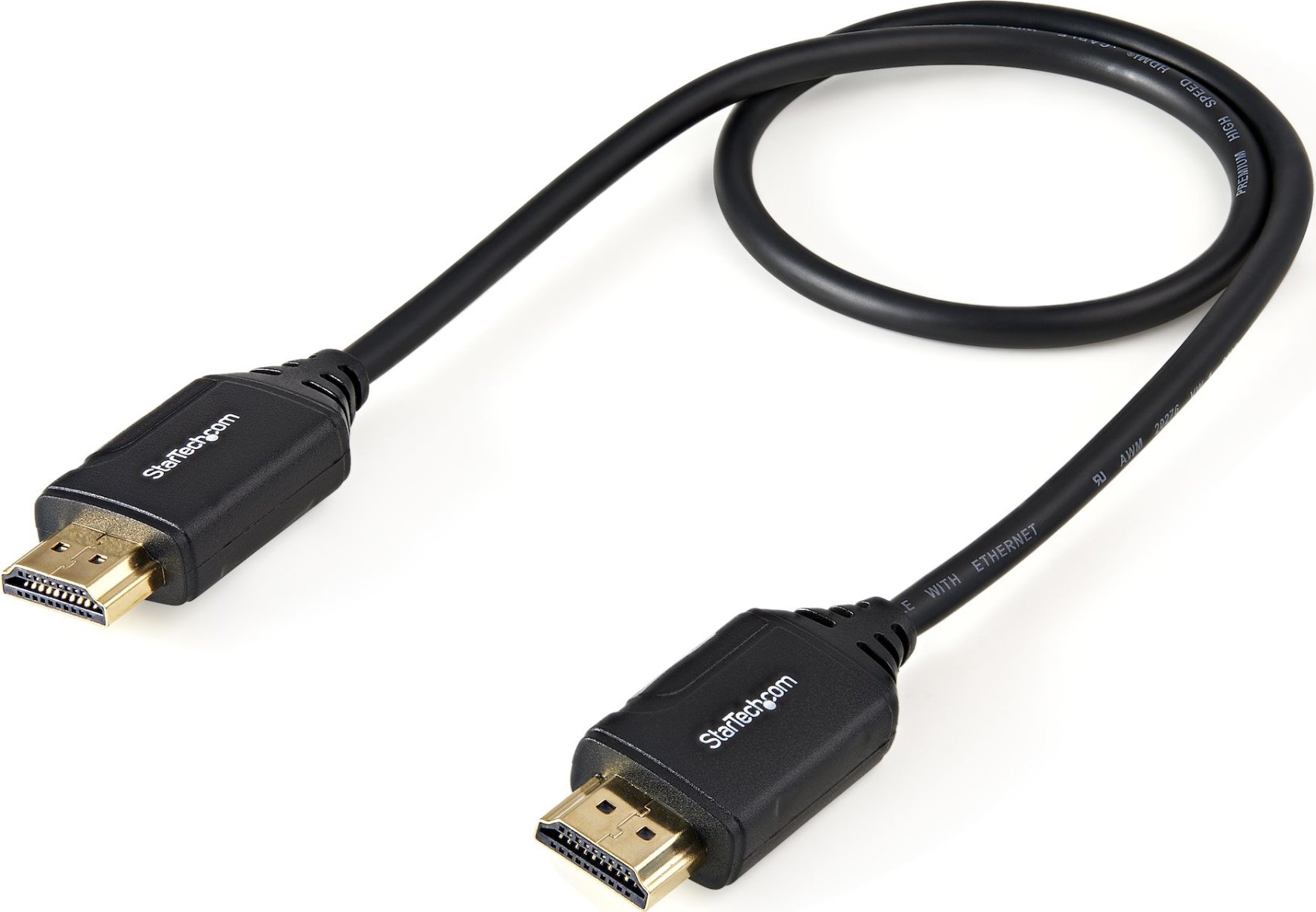 StarTech.com Cable de 50cm HDMI 2.0 Certificado Premium con Ethernet - HDMI de Alta Velocidad Ultra HD de 4K a 60Hz HDR10 - para Monitores o TV UHD. Longitud de cable: 0,5 m, Conector 1: HDMI tipo A (Estándar), Género del conector 1: Macho, Conector 2: HDMI tipo A (Estándar), Género del conector 2: Macho, Contactos del conector chapado: Oro, Versión HDMI: 2.0, Canal de retorno de audio (ARC), Color del producto: Negro