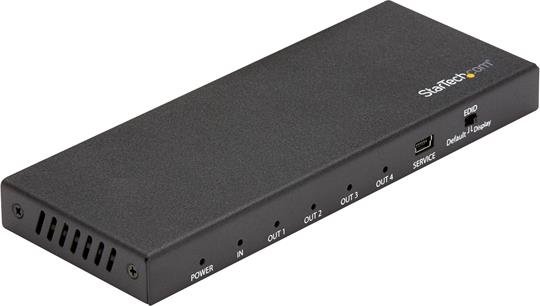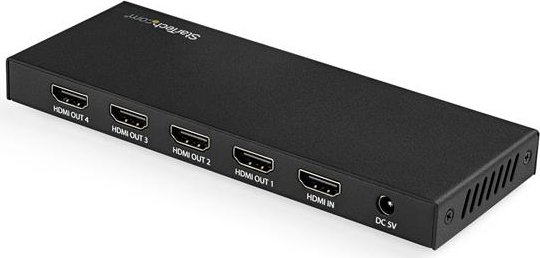 StarTech.com Splitter HDMI de 4 Puertos - 60Hz. Tipo de puerto de vídeo: HDMI, Salida de vídeo: 4x HDMI. Máxima resolución: 3840 x 2160 Pixeles, Color del producto: Negro, Tipo HD: 4K Ultra HD. Voltaje de entrada AC: 100 - 240 V, Corriente de entrada: 1 A, Voltaje de salida: 5 V. Ancho: 64 mm, Profundidad: 165 mm, Altura: 65 mm. Ancho del paquete: 148 mm, Profundidad del paquete: 212 mm, Altura del paquete: 55 mm
