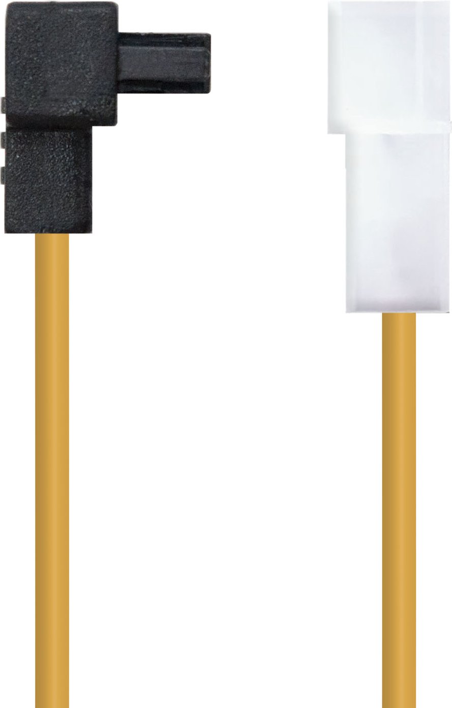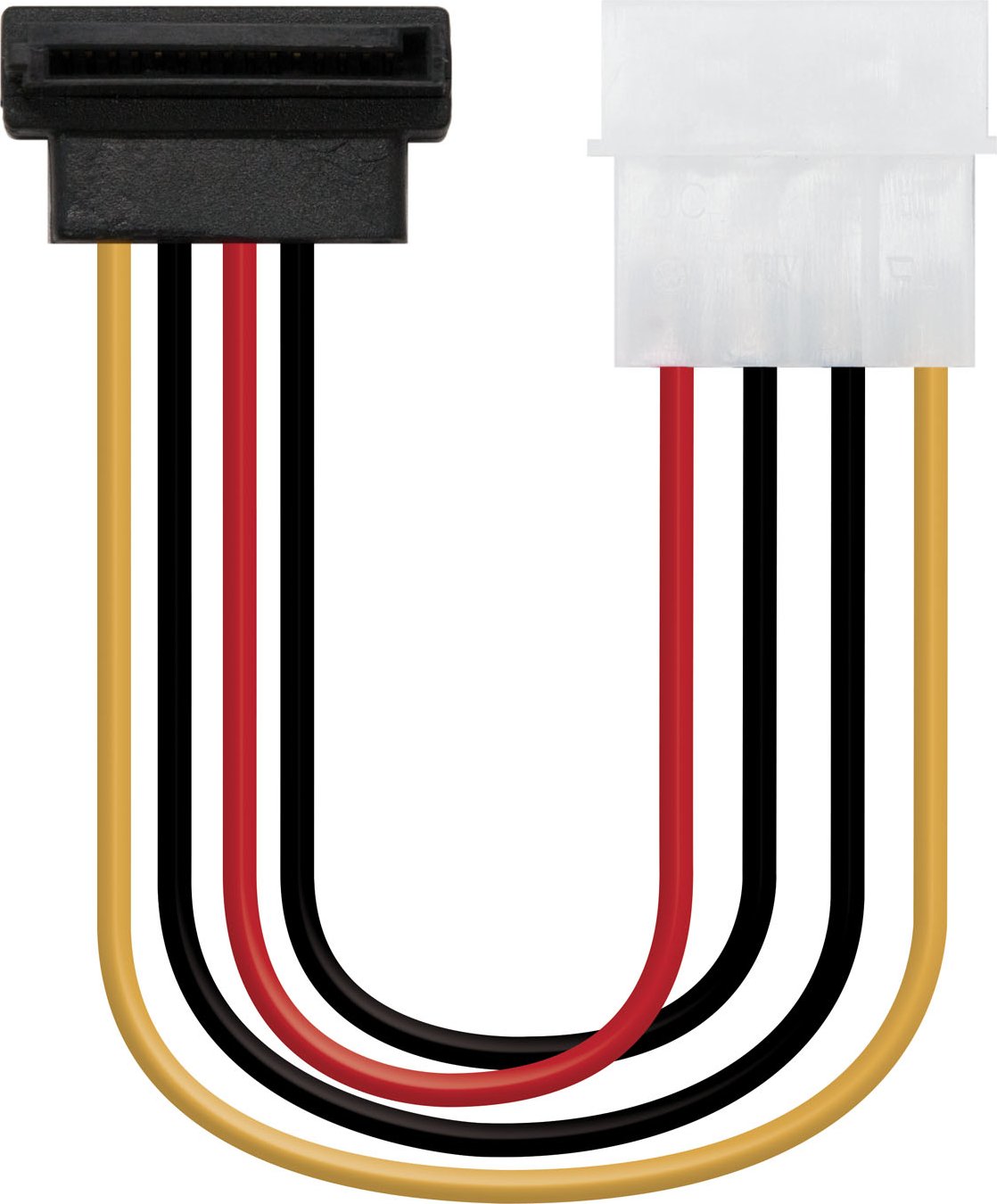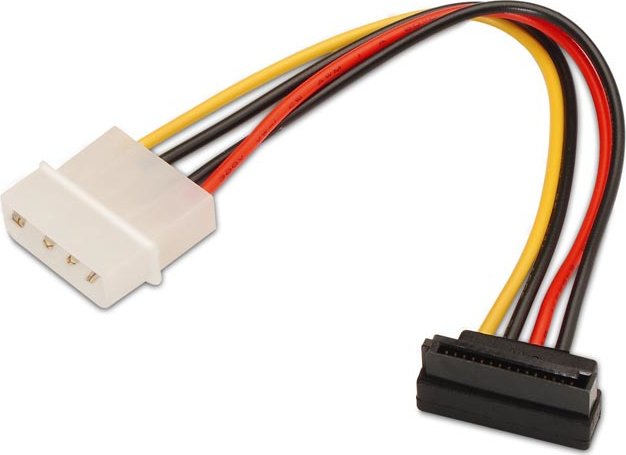 - Conector molex 4 pin macho en un extremo y conector sata alimentación acodado hembra en otro.