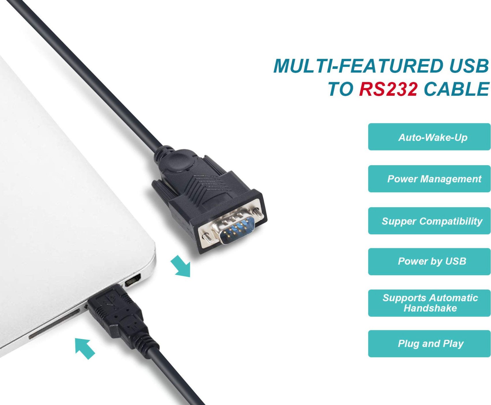 - Cable USB-A a serie (DB9), M/M, 1,5 m