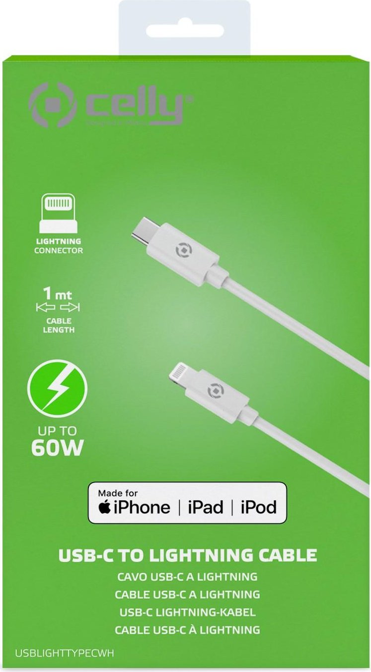 Celly Usblighttypecwh Cable De Teléfono Móvil Blanco 1 M Usb C Lightning
