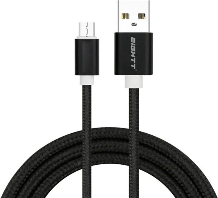 Eightt Cable Usb A Microusb 1mts Trenzado De Nylon Negro. Carcasa De Aluminio