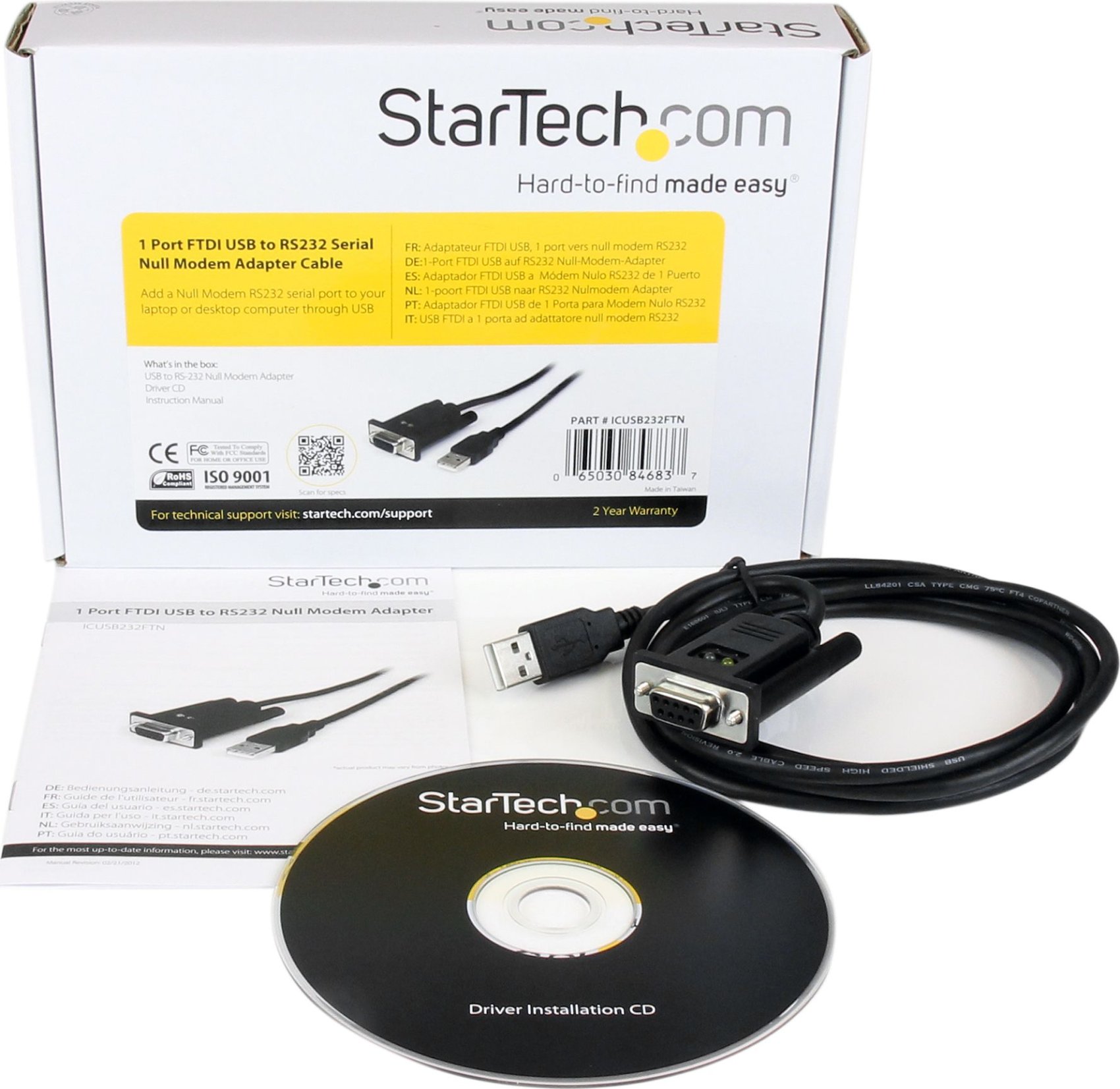 Agregue un puerto serie RS232 de módem nulo a su ordenador de sobremesa o portátil a través de una conexión USBEl Cable Adaptador USB a Módem Nulo Serie con FTDI (1 Puerto), ICUSB232FTN convierte un puerto USB 1.1 o 2.0 en un puerto serie RS232 DB9 de módem nulo, resolviendo los conflictos entre un DCE y un DTE fácilmente sin necesidad de emplear adaptadores o cables serie cruzados adicionales.Este adaptador de diseño compacto ofrece retención COM, que permite asignar el mismo valor de puerto COM en forma automática en caso de tener que desconectar el cable y volverlo a conectar al ordenador host, o reiniciar el sistema. El chipset FTDI integrado se puede personalizar y ofrece funciones avanzadas y compatibilidad que no necesariamente proporcionan otras soluciones.El adaptador USB a Módem Nulo es compatible con una amplia variedad de sistemas operativos entre los cuales se incluyen Windows®, Windows CE, Mac OS y Linux, lo que favorece su integración en entornos mixtos.Ofrece garantía por 2 años y soporte técnico gratuito de por vida con el respaldo de StarTech.com.The StarTech.com Advantage
