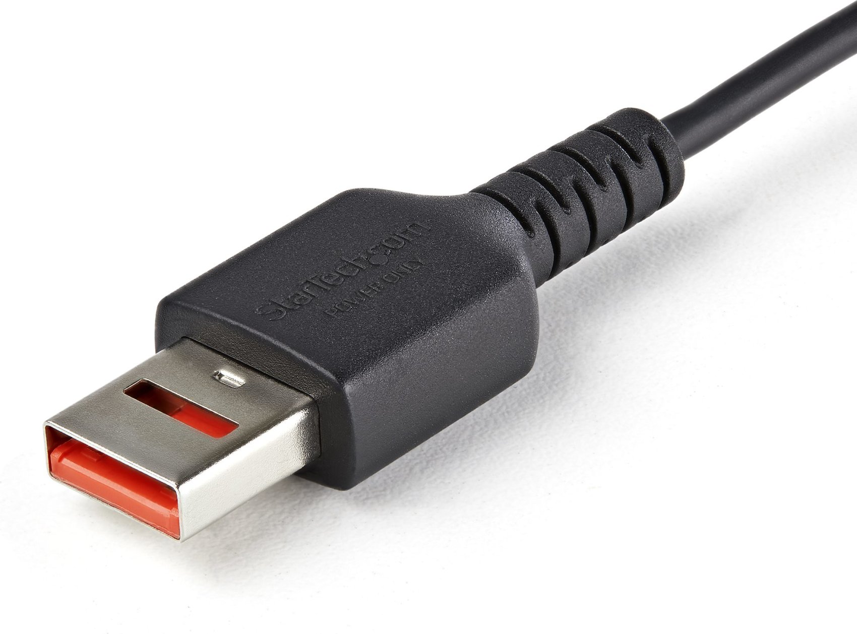 StarTech.com Cable de 1m Adaptador Bloqueador USB de Datos – Adaptador USB a USB-C de Carga Segura – USB Tipo C Solo de Carga para Tablet o Teléfono Móvil – Protector de Bloqueo de Datos. Longitud de cable: 1 m. Conector 1: USB A, Conector 2: USB C, Versión USB: USB 2.0, Tasa de transferencia (máx): 0,48 Gbit/s, Contactos del conector chapado: Níquel, Color del producto: Negro