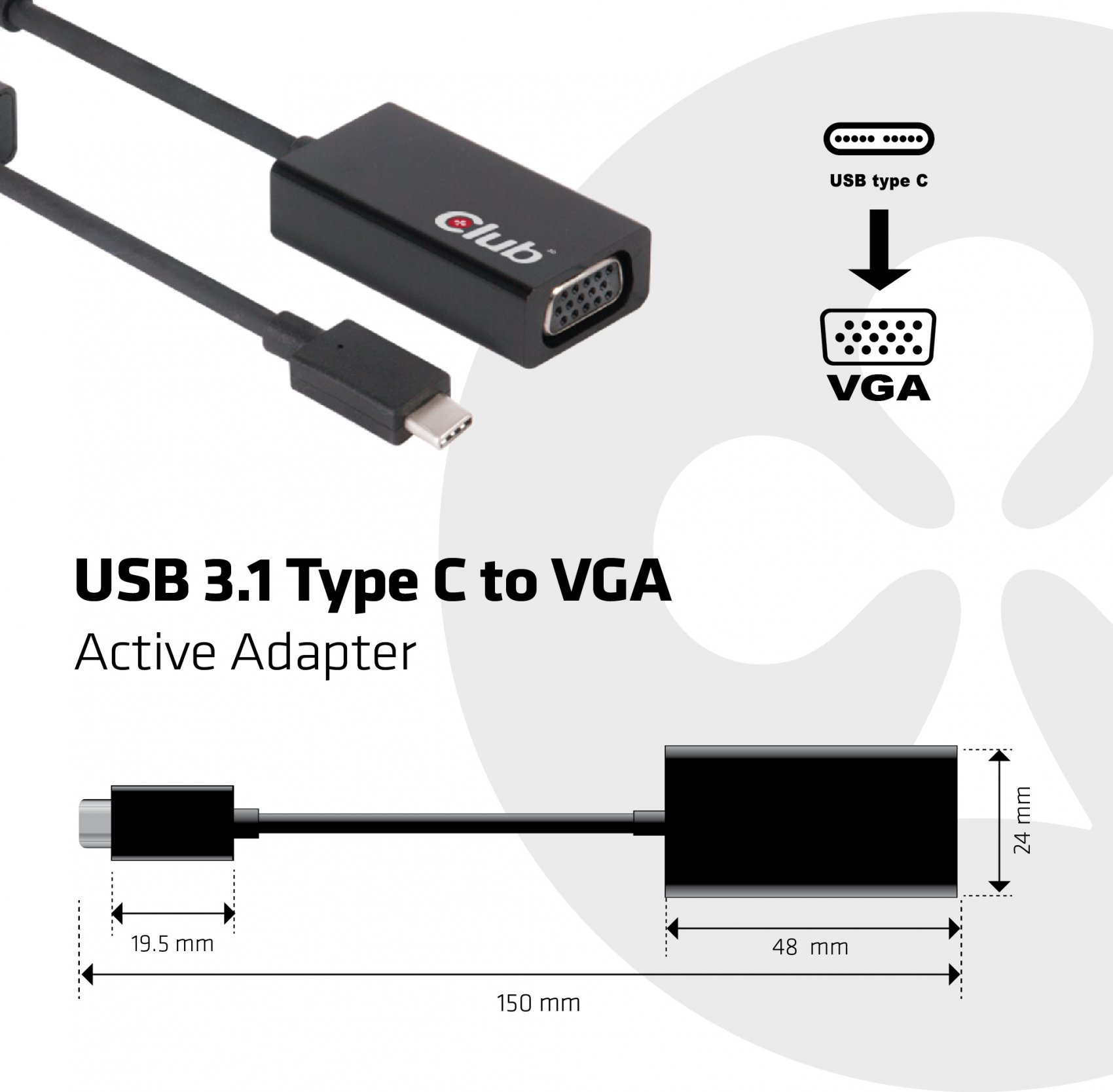 Club3D USB 3.1 Type C to VGA Active AdapterCaracterísticas