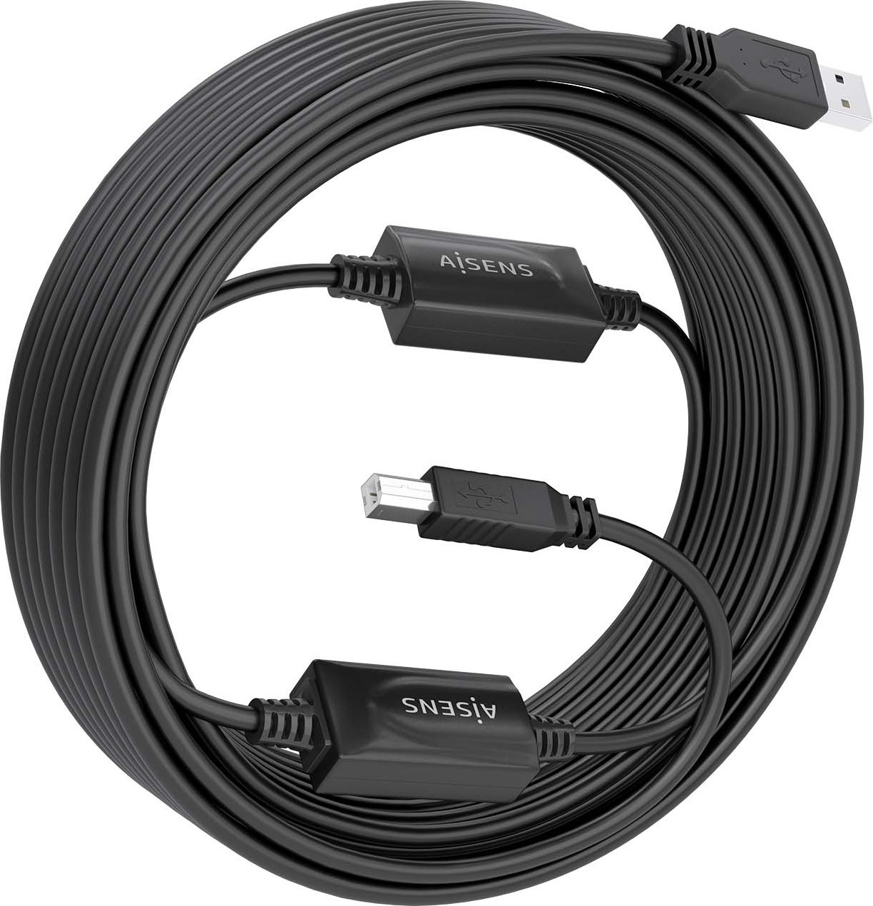 Aisens Cable Usb 2.0 Con Amplificador, Tipo A M-b M, Negro, 15m